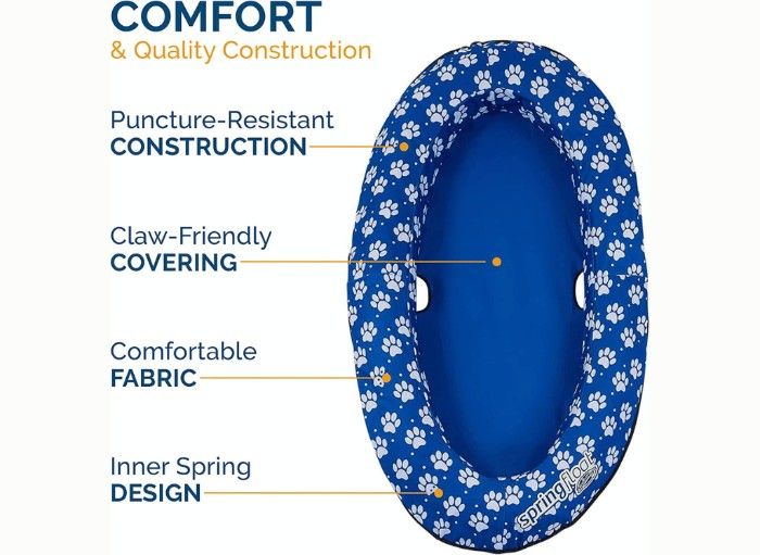 This float is fit for your furry physique and comes in a stylish blue color with orange paw prints and bones for that extra touch of pizzazz. Plus, with an oval shape and two water-drawing holes in the center, you'll be able to keep your balance like a pro. So soak up the sun, catch some waves, and show your humans who's boss with this sturdy and durable float! It's a dog's life after all!