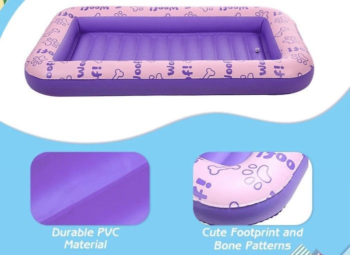 Dogs enjoy beating the heat and having some fun! This new and improved design is not only durable but also comes with an inflatable floor for added comfort - because let's be honest, no one likes a sore butt after a day of lounging by the pool.