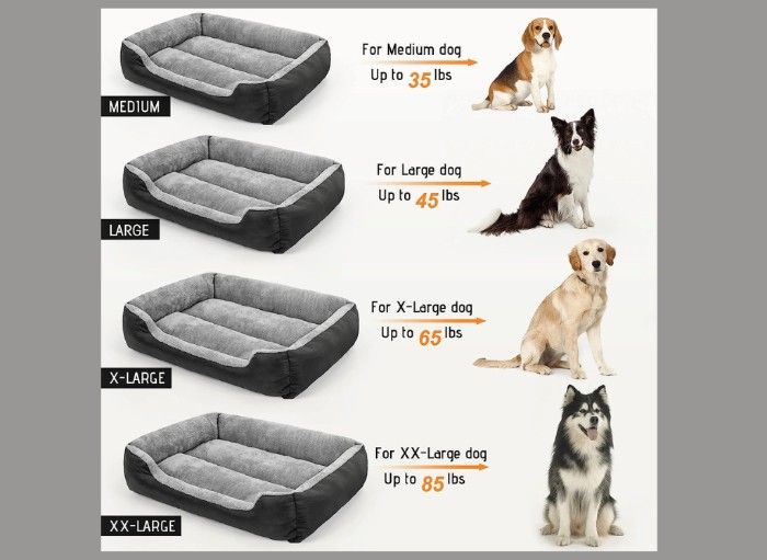- Product Dimensions: 28" x 22" Medium for Small Dogs up to 35lbs; 31" x 26" Large for Dogs up to 45lbs; 37" x 30" X-Large for Dogs up to 65lbs; 44" x 34" XXL for Dogs up to 85lbs