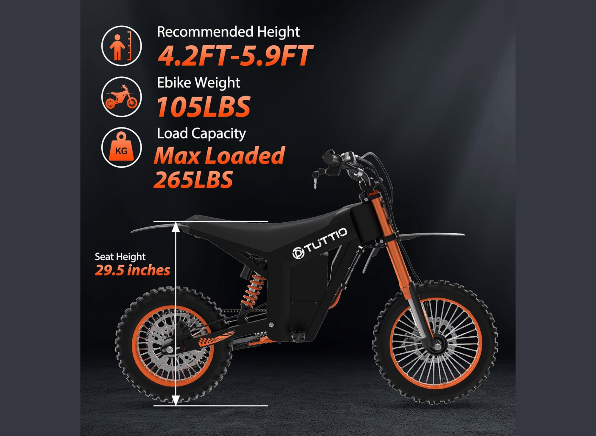 With its hydraulic brakes, precise maneuverability, and maximum steering angle of 45°, the TUTTIO Soleil 01 offers responsive and efficient stopping power. This electric dirt bike gives you complete control over your journey and makes every turn smooth and effortless.
