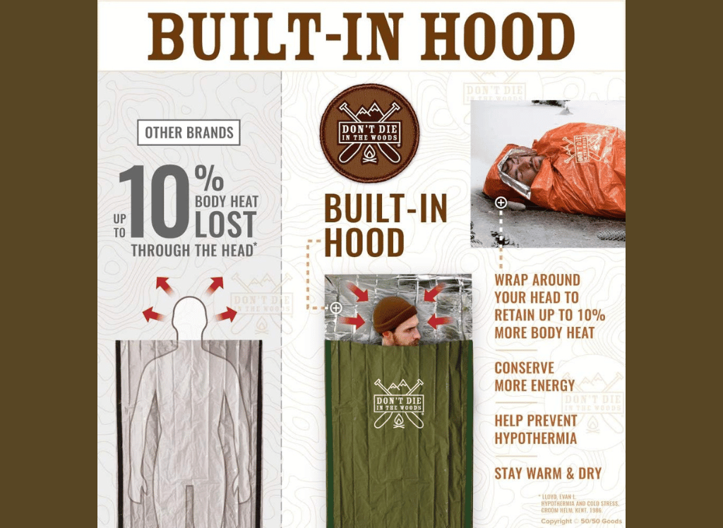 Don't Die In The Woods has designed a revolutionary hood for outdoor adventurers who want to stay warm while camping in cold climates. This hood is designed to retain body heat and provide total body protection from the elements. It's also incredibly light, waterproof, and fits into your backpack or car easily - no need to lug around extra weight!