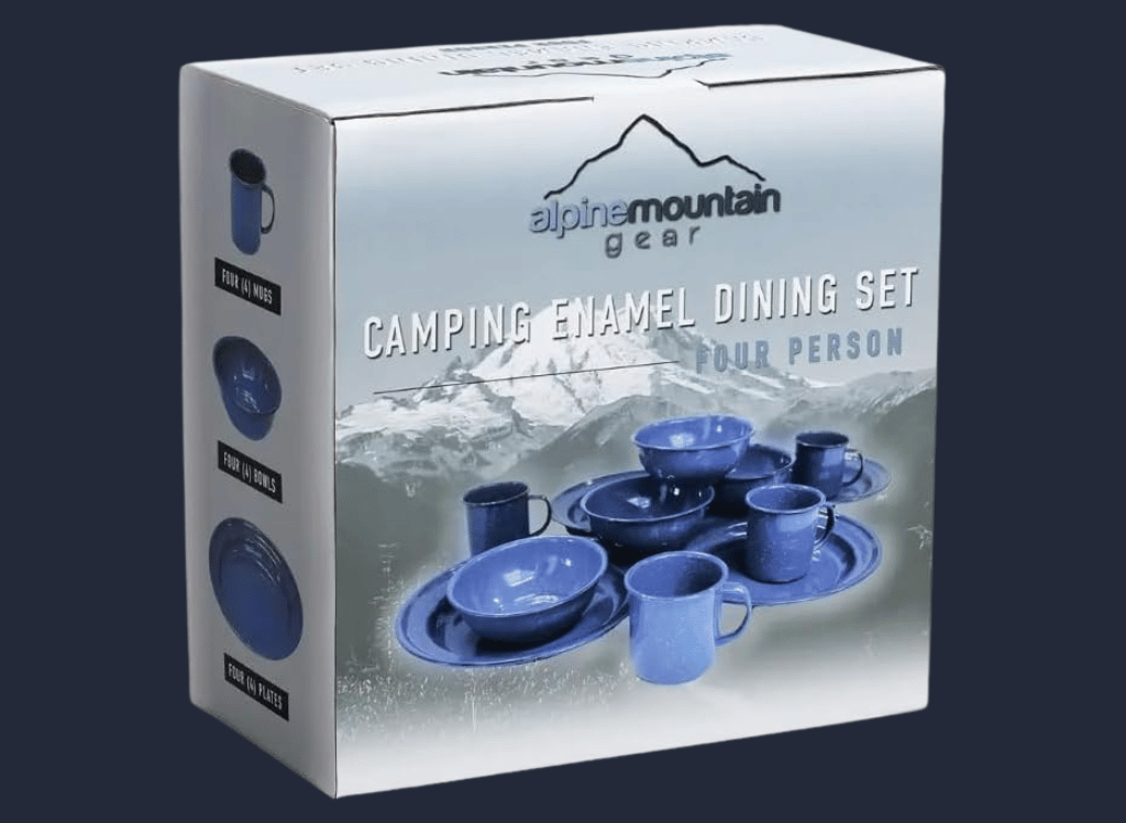 The Alpine Mountain Gear 4-Person Enamelware Dining Set enhances your camping experience with its lightweight design, durable construction, and practical features. So why settle for flimsy disposable plates when you can have a reliable and stylish dish set for all your outdoor meals?