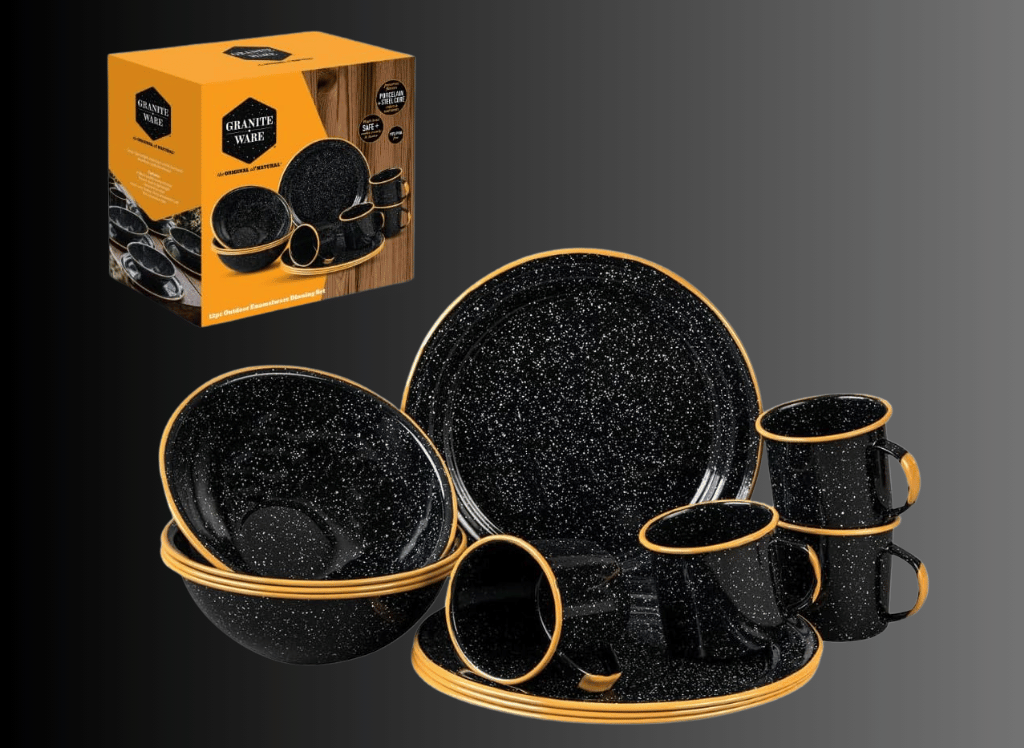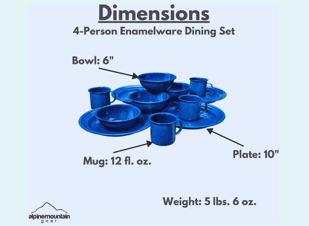 - Durability: Made from double-fired enamelware, this dinnerware set is built to withstand the rigors of outdoor use.