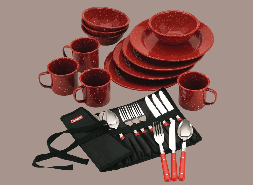 Gently wipe both the plate surface and bottom of the camping dish to remove baked-on food. Don't compromise on quality and convenience when it comes to outdoor dining. Choose the Coleman 24-Piece Enamel Dinnerware Set for sturdy, stylish, and portable dinnerware that will elevate your outdoor experience.