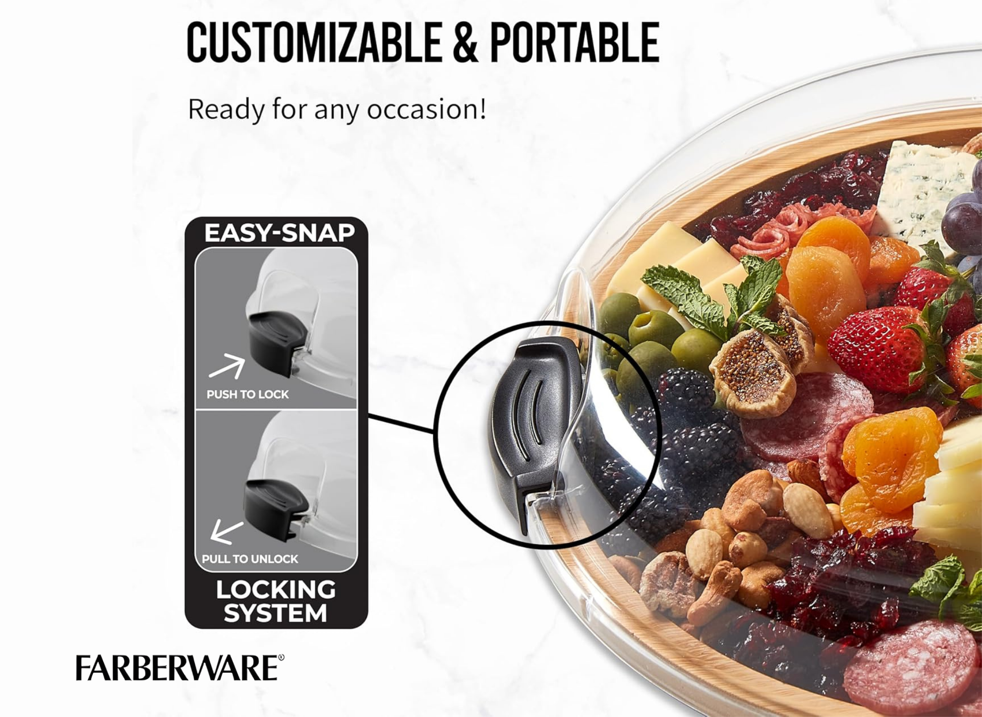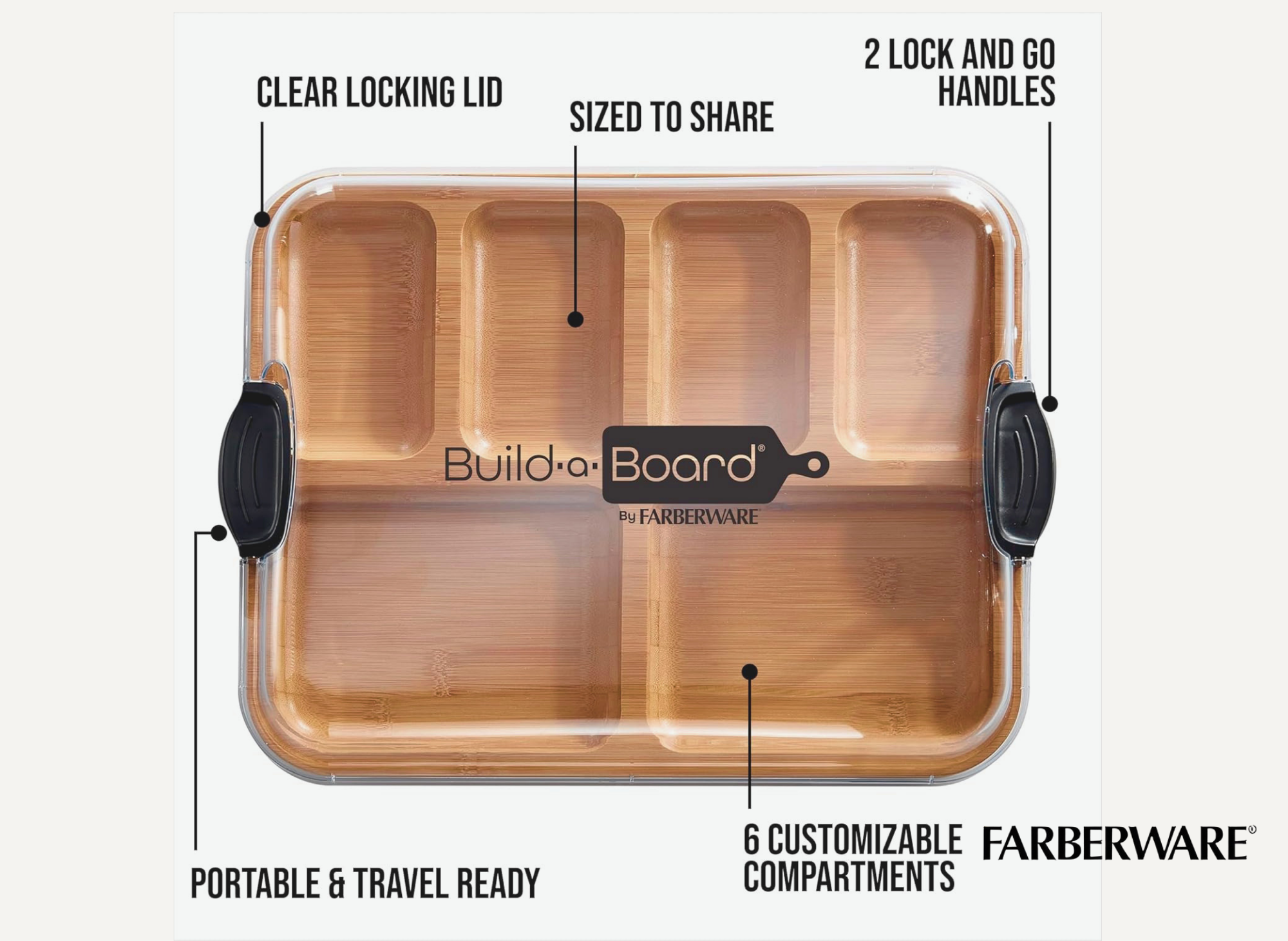 Investing in a Farberware Build-A-Board means you’re choosing great value, great price, and great style, all while prioritizing the safety of your food and your family. With its secure locking lid, versatile compartments, and premium bamboo construction, this board is a perfect addition to any kitchen, helping you prep and serve with confidence every time.