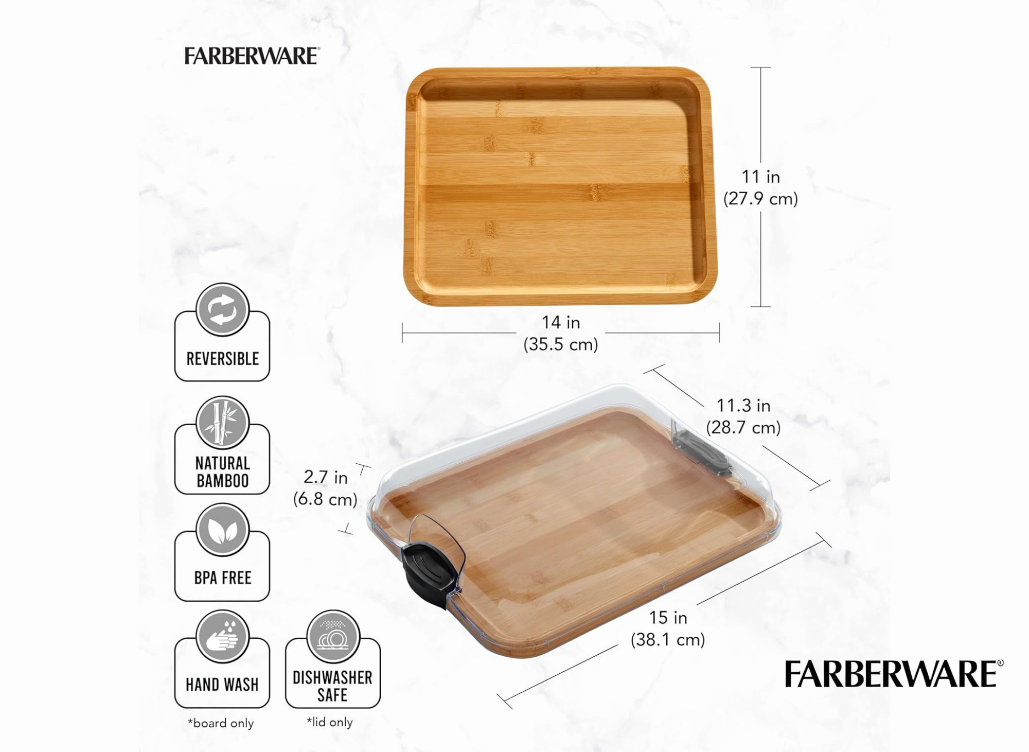 If you’re tired of basic plastic cutting boards that scratch easily or lack versatility, this bamboo cutting board collection is a refreshing change. The product feels premium without the premium price tag. Items can be returned for any reason in new and unused condition, ensuring customer satisfaction and flexibility. To preserve the life and appearance of your Farberware bamboo cutting board, hand washing only with warm water and mild detergent is recommended.