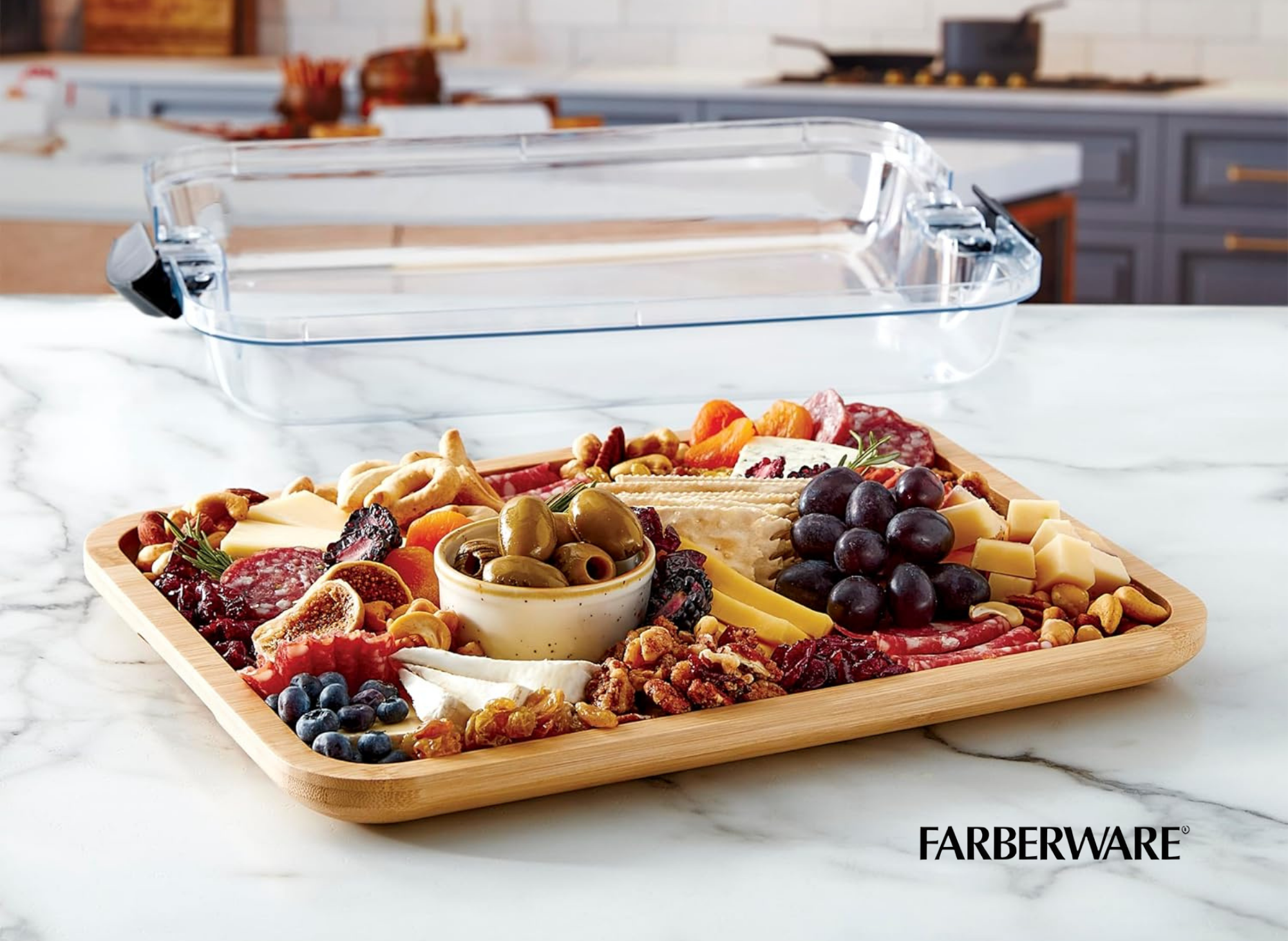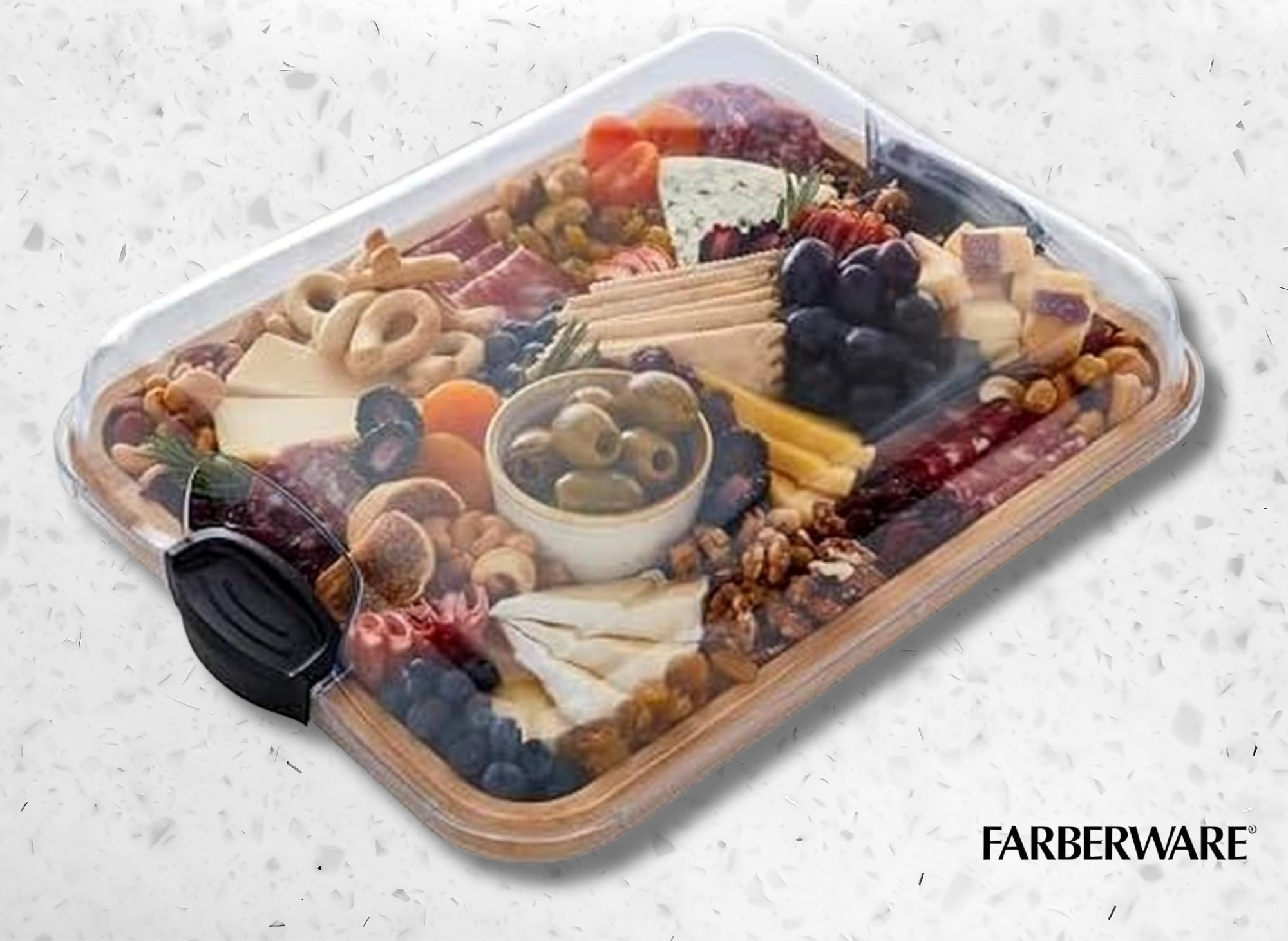 The Farberware Build-A-Board collection stands out for its thoughtful approach to safety and functionality. Each board is crafted from durable bamboo, a material known for its natural resistance to moisture and bacteria. The addition of a clear locking lid is a game-changer; it keeps your food secure, fresh, and protected from contaminants, whether you’re prepping in the kitchen or storing leftovers in the fridge. The locking lid also makes it easy to transport your charcuterie board creations or meal prep without worrying about spills.