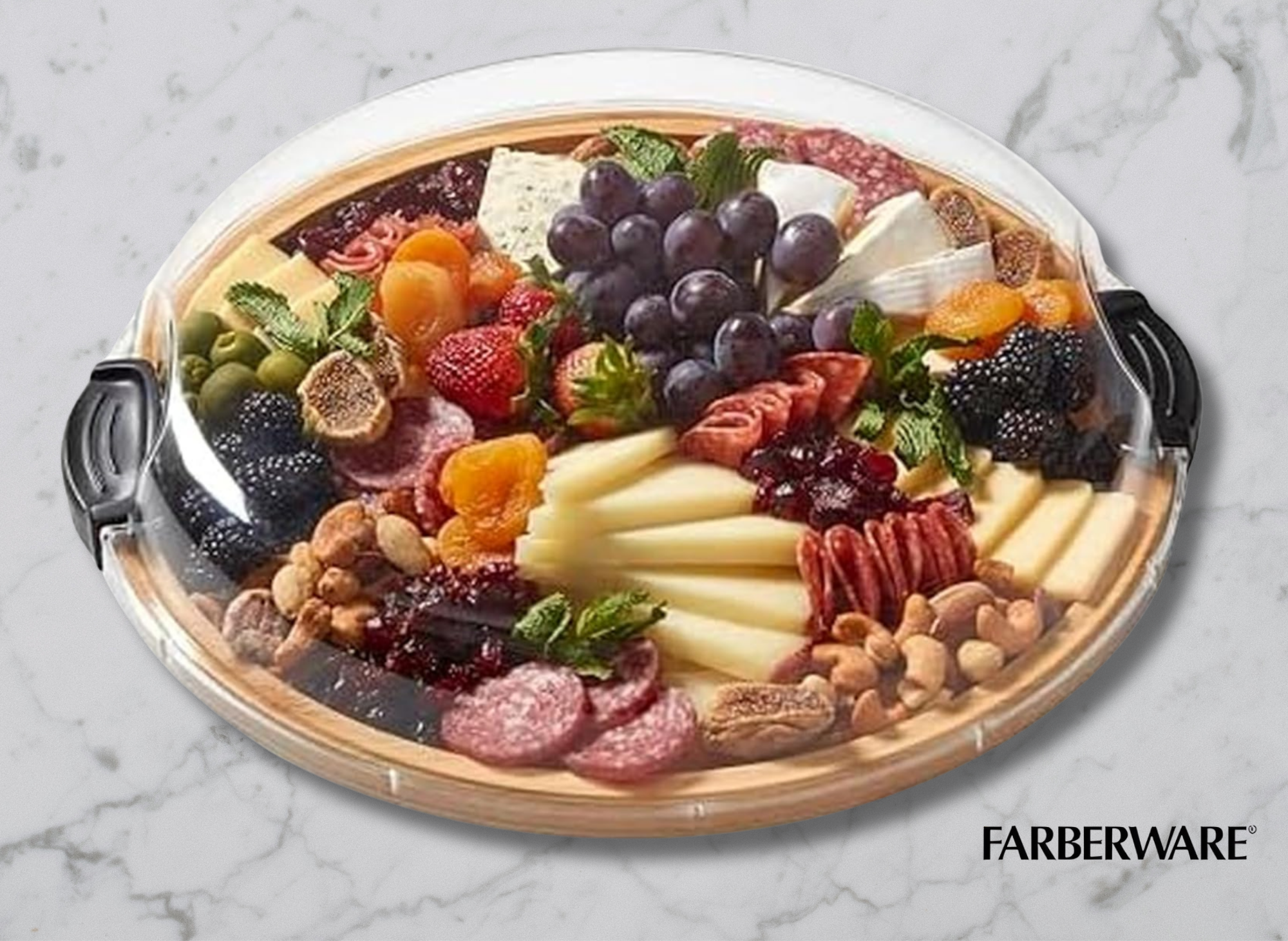For maximum versatility, choose this version with multiple built-in compartments. Arrange cheese, fruits, meat, and more beautifully, then cover with the clear locking lid for storage or transport. It's a favorite for charcuterie board enthusiasts.