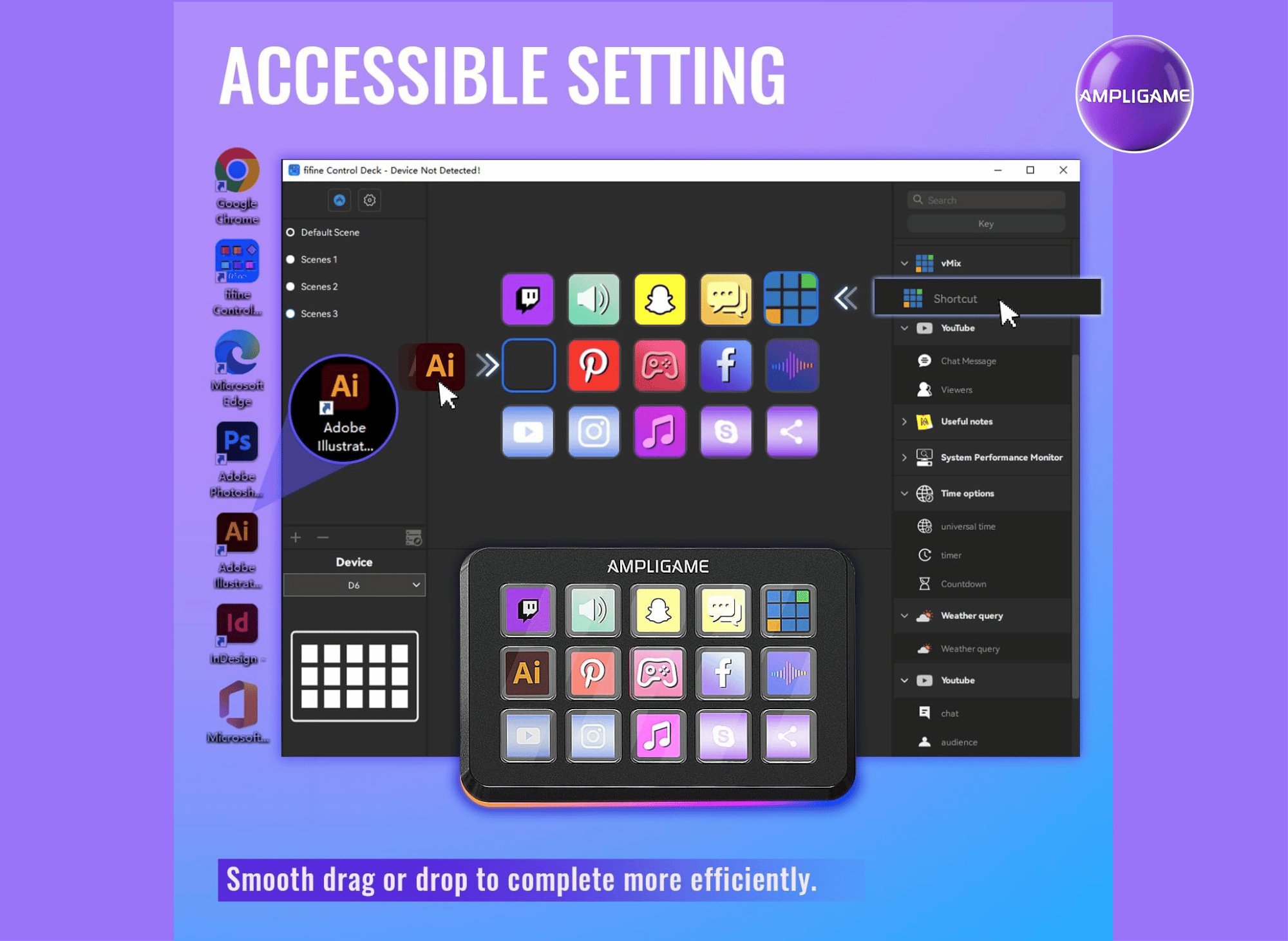 When paired with OBS, Twitch, or Streamlabs, the D6 is compatible with these popular streaming platforms to simplify live streaming workflows. The device enhances productivity by offering customizable features like programmable buttons, which streamline gaming and content creation tasks. Stream management becomes much smoother with functions like scene switching, touch mute, and volume control.