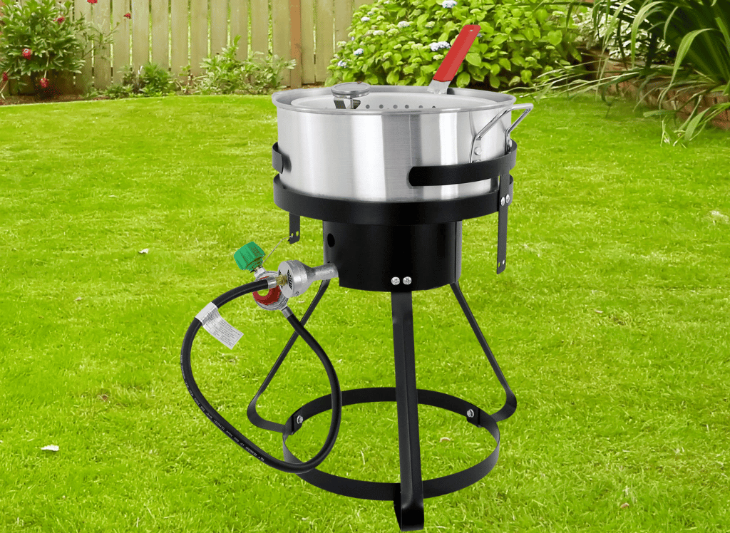 The CreoleFeast Propane 10 Qt. Fish Fryer Boiler Steamer Set is a must-have for any outdoor cooking enthusiast. Its high output of 50,000 BTU cast iron burner and adjustable air control panel give users the power to fry up their favorite dishes easily.