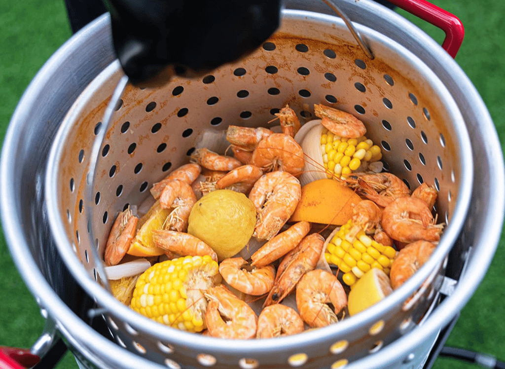 The King Kooker Propane Outdoor Fry Boil is perfect for outdoor frying and boiling. You can easily cook your favorite meals with its aluminum fry pan and basket with a heat-resistant handle.