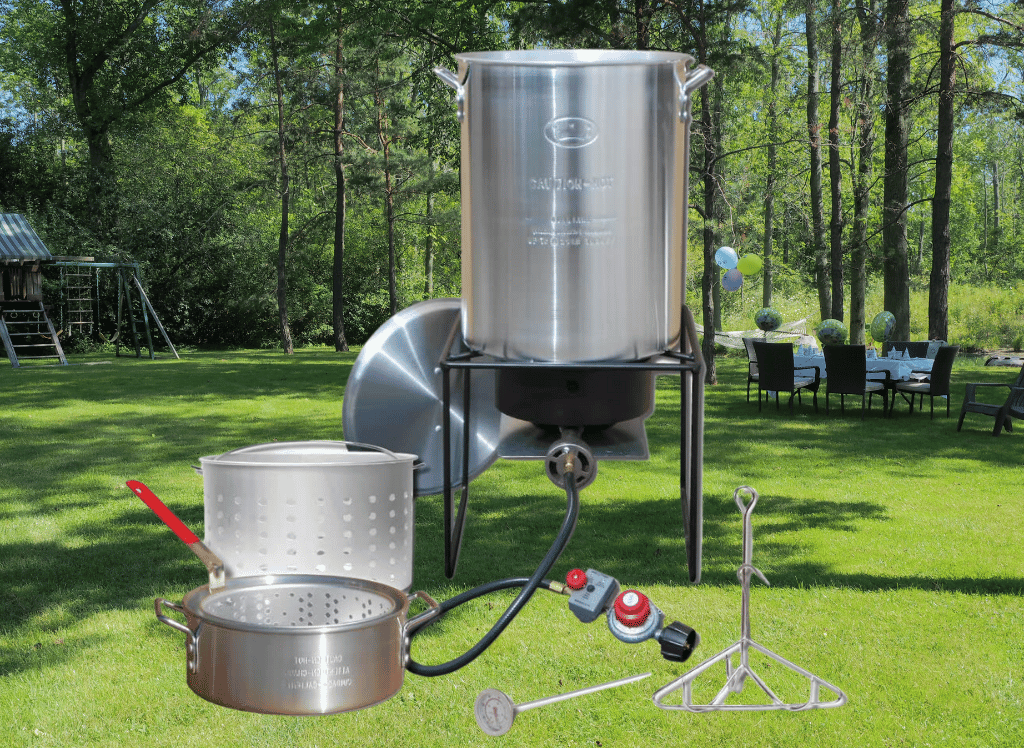 The set also comes with a 29-quart aluminum turkey pot with a lid and basket, a lifting rack, and a hook for easy maneuvering. Enjoy outdoor cooking today with the King Kooker Propane Outdoor Fry Boil!