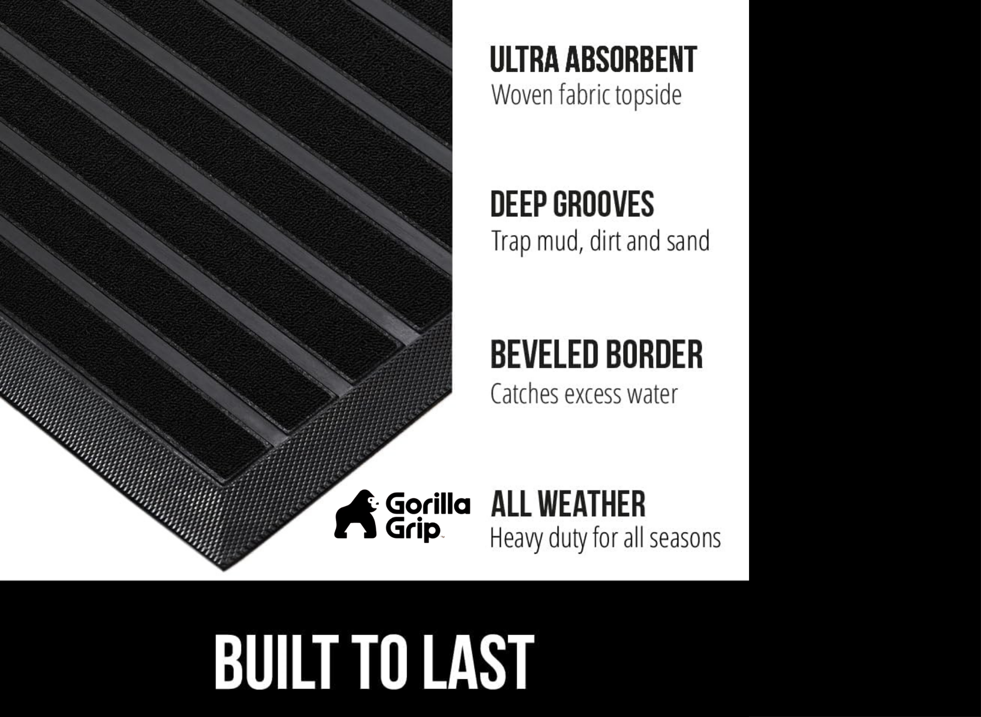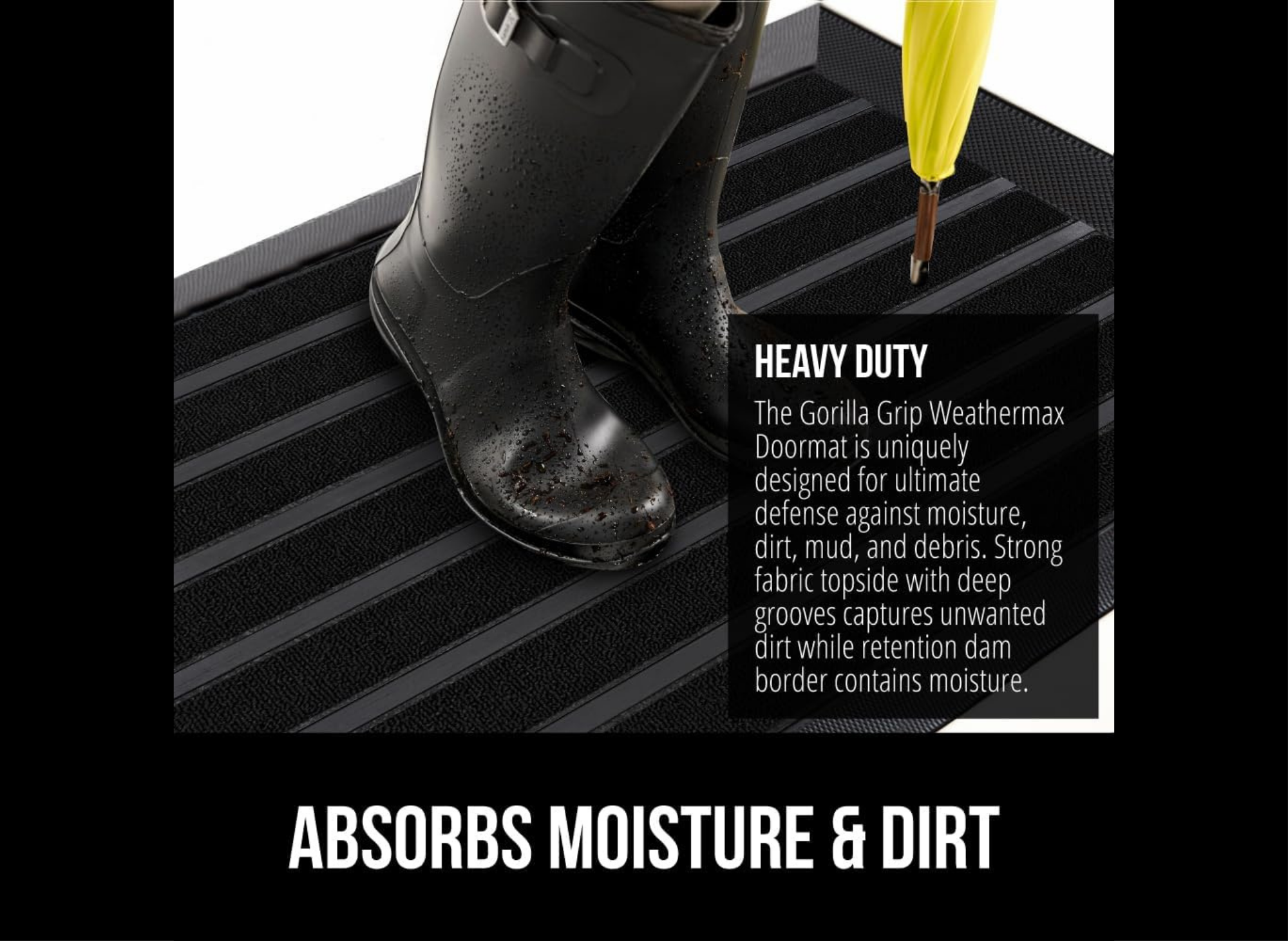 The core appeal of the GORILLA GRIP 100% Waterproof All-Season WeatherMAX Doormat lies in its robust design. It is built tough to handle anything Mother Nature throws its way.