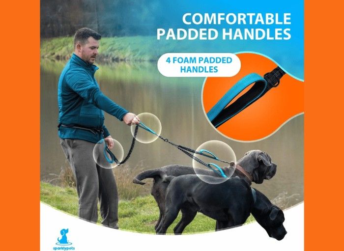 Walking two dogs at once can be a challenge, but the SparklyPets Hands-Free Double Dog Leash can make it a breeze. You won't have to worry about feeling the pull of two strong dogs thanks to its shock-absorbing bungees, making those long walks enjoyable again.