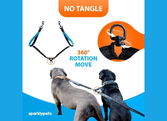 Get ready to tackle your next dog walk with SparklyPets Hands-Free Double Dog Leash. This dual dog leash is designed to keep your pups tangle-free, so you can focus on having more fun while walking, running, or jogging with them. With the no-tangle swivel splitter, you'll enjoy a 360° rotation so your dogs can explore without getting caught up in their leashes.