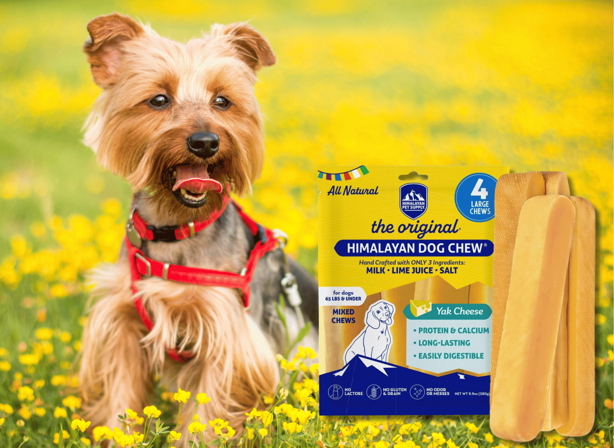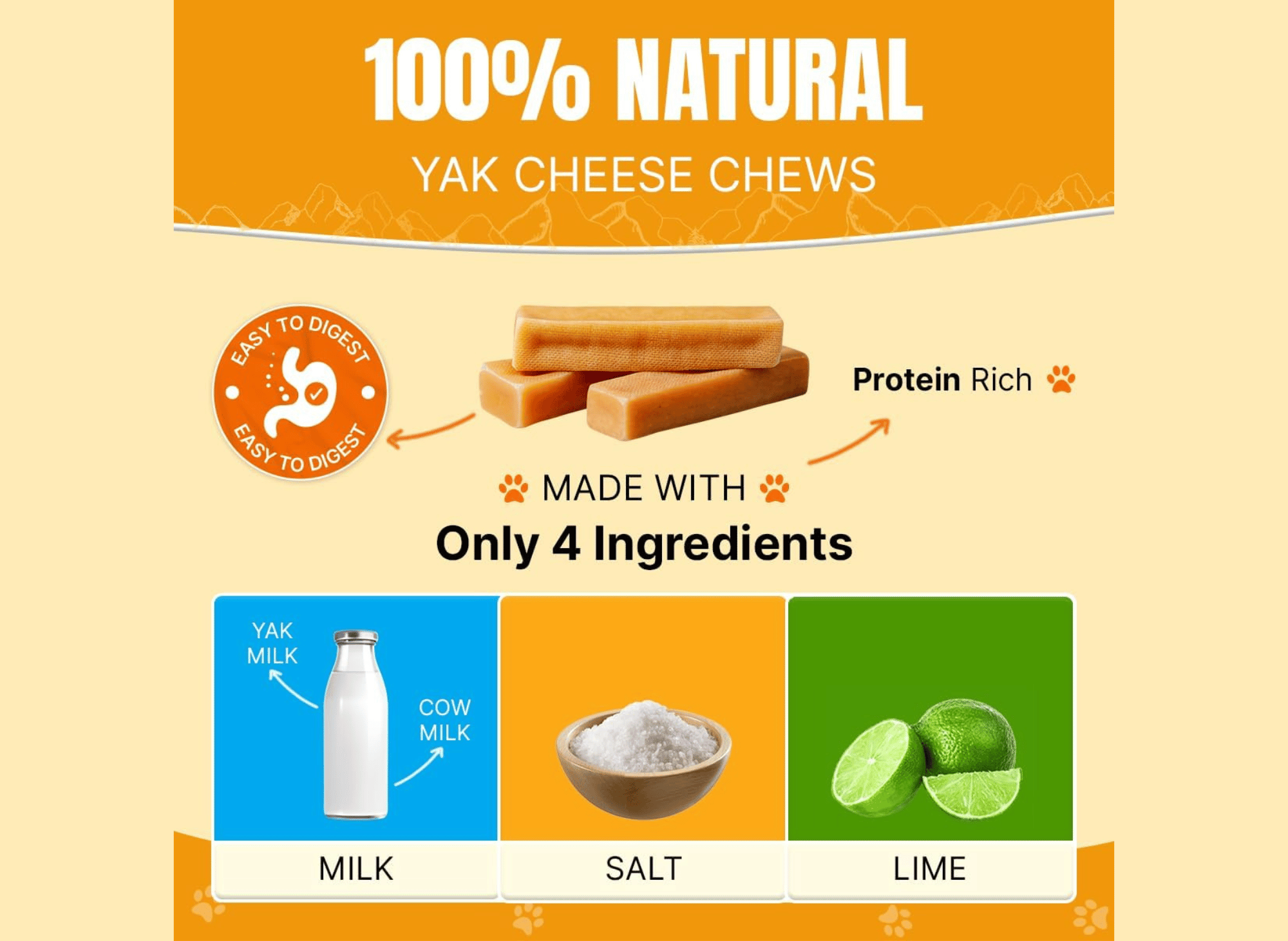 - 100% Natural Ingredients: Made with only four simple, natural ingredients — yak milk, cow milk, salt, and lime juice — ensuring a healthy, chemical-free treat for your dog.