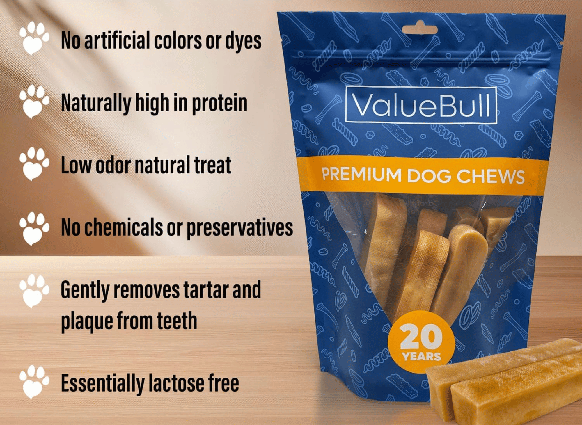 - Lactose-Free and Easily Digestible: Suitable for dogs with sensitive stomachs or dietary restrictions, providing a safe alternative to rawhide or other less digestible treats.