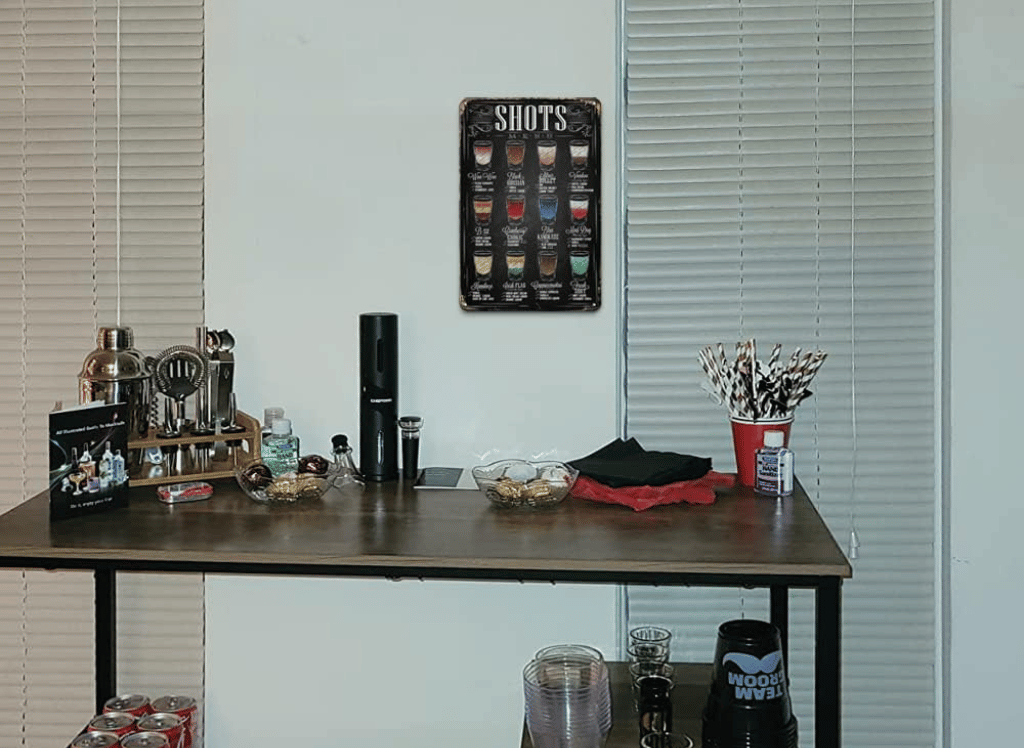 Add a touch of humor and enhance the atmosphere in your home bar with the Yoyi Art Bar Shots Menu Metal Sign. Cheers to good times and great decor! So, it's a funny bar sign perfect for decorating your home bar area, man cave, or any other indoor or outdoor space. This funny sign will charm any room with its vintage look and sturdy design.