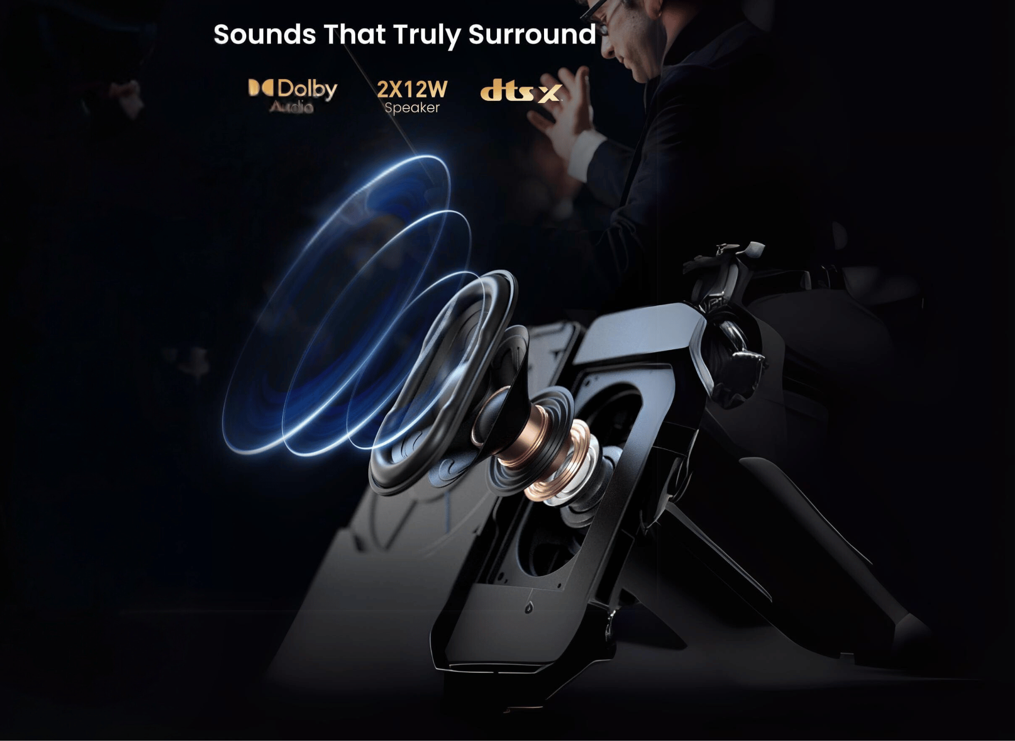 Immerse yourself in cinematic sound with dual 12W built-in speakers, Dolby Audio, and DTS:X technology. The spacious sound chamber delivers an immersive audio experience, making it the perfect addition to your home theater setup.