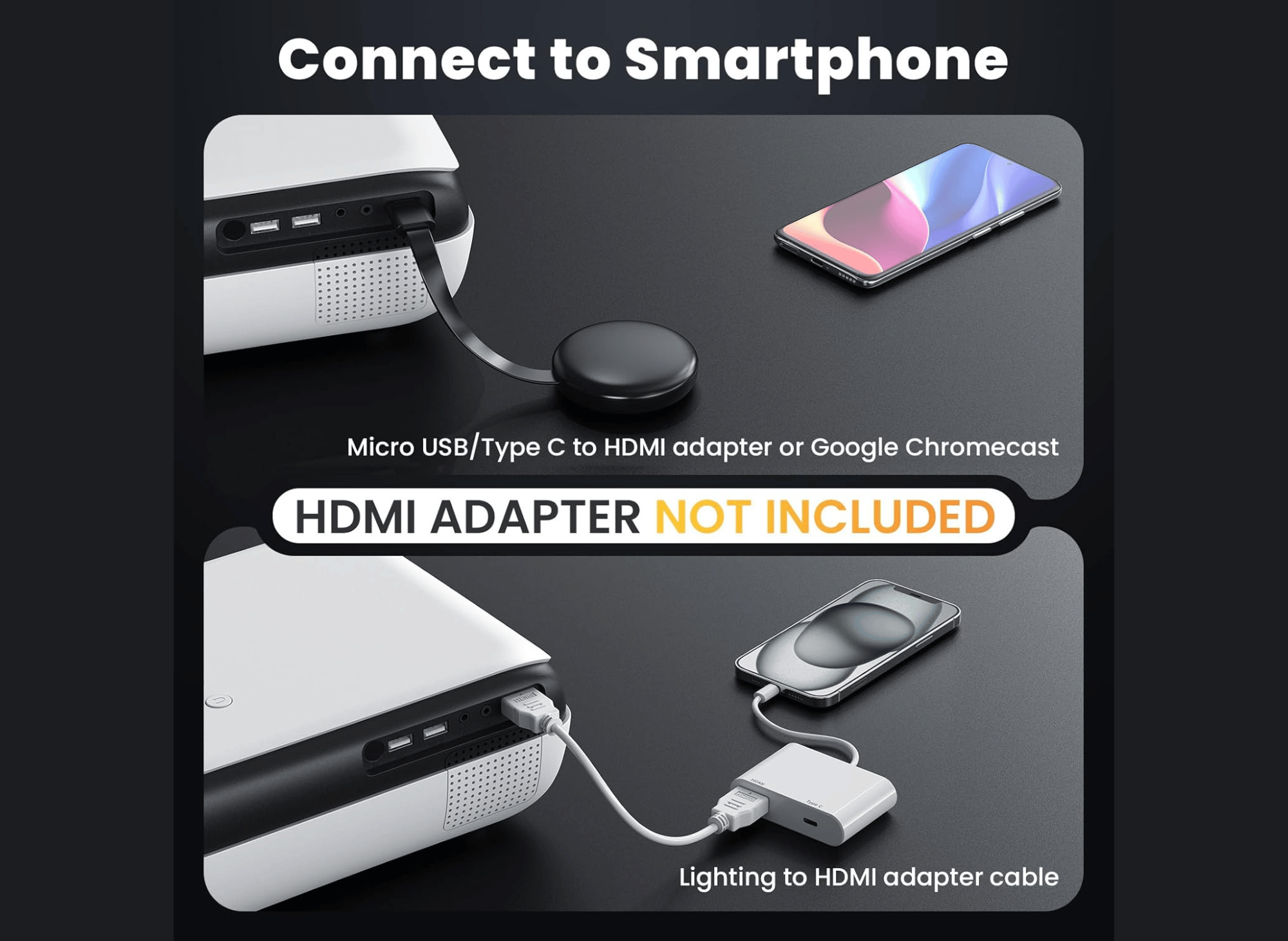 - Versatile Connectivity: With support for wireless screen mirroring on iOS, Android, and Windows devices, along with multiple HDMI and USB ports, the PJ40 accommodates a variety of input options for streaming and playback.