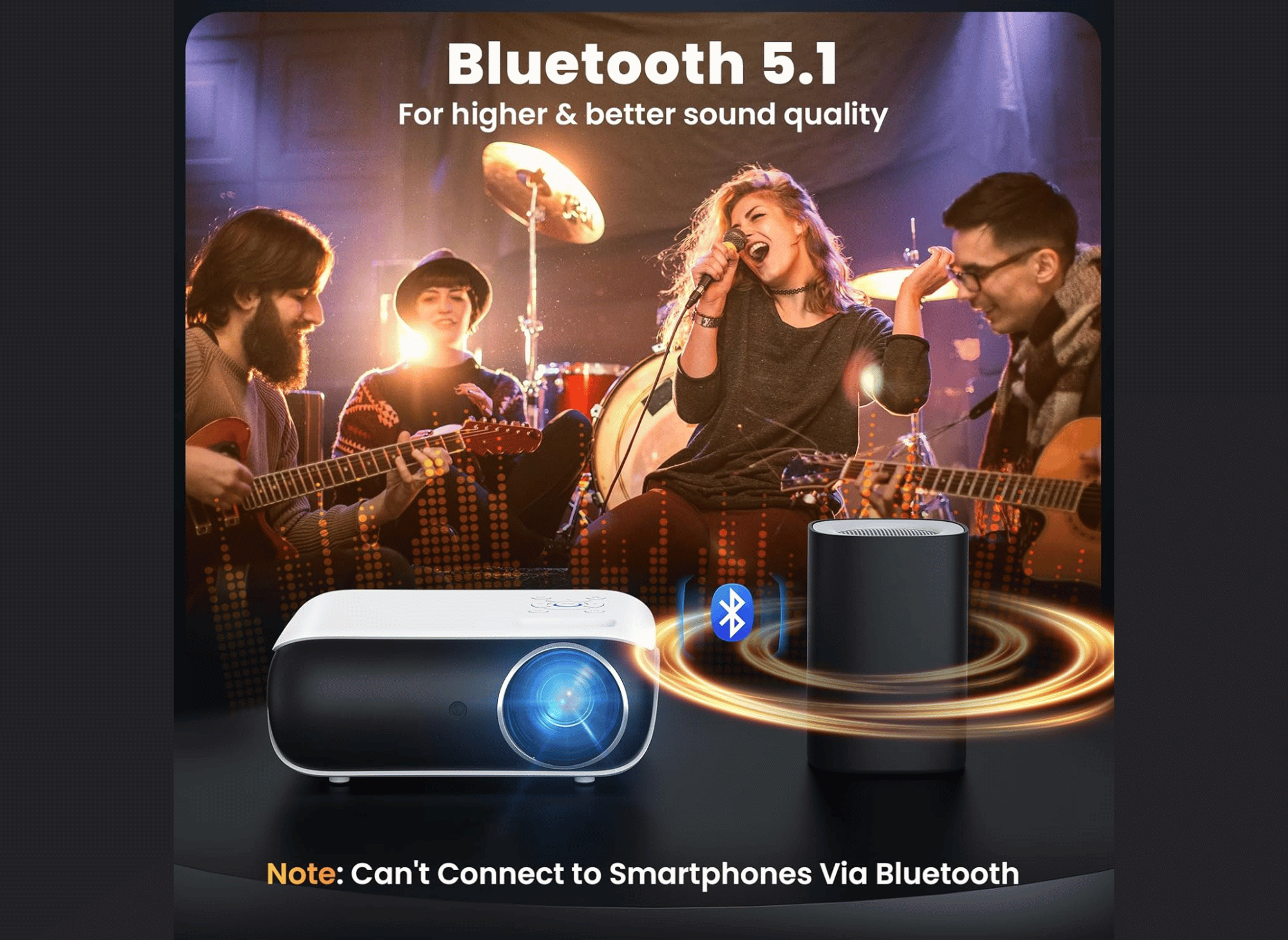 One of the standout features of this projector is its Bluetooth 5.1 function, which allows for wireless connectivity to headphones, speakers, soundbars, and other audio devices. You can enjoy crisp and clear sound from its built-in Hi-Fi stereo speakers while watching your favorite content in your small movie room or bedroom.