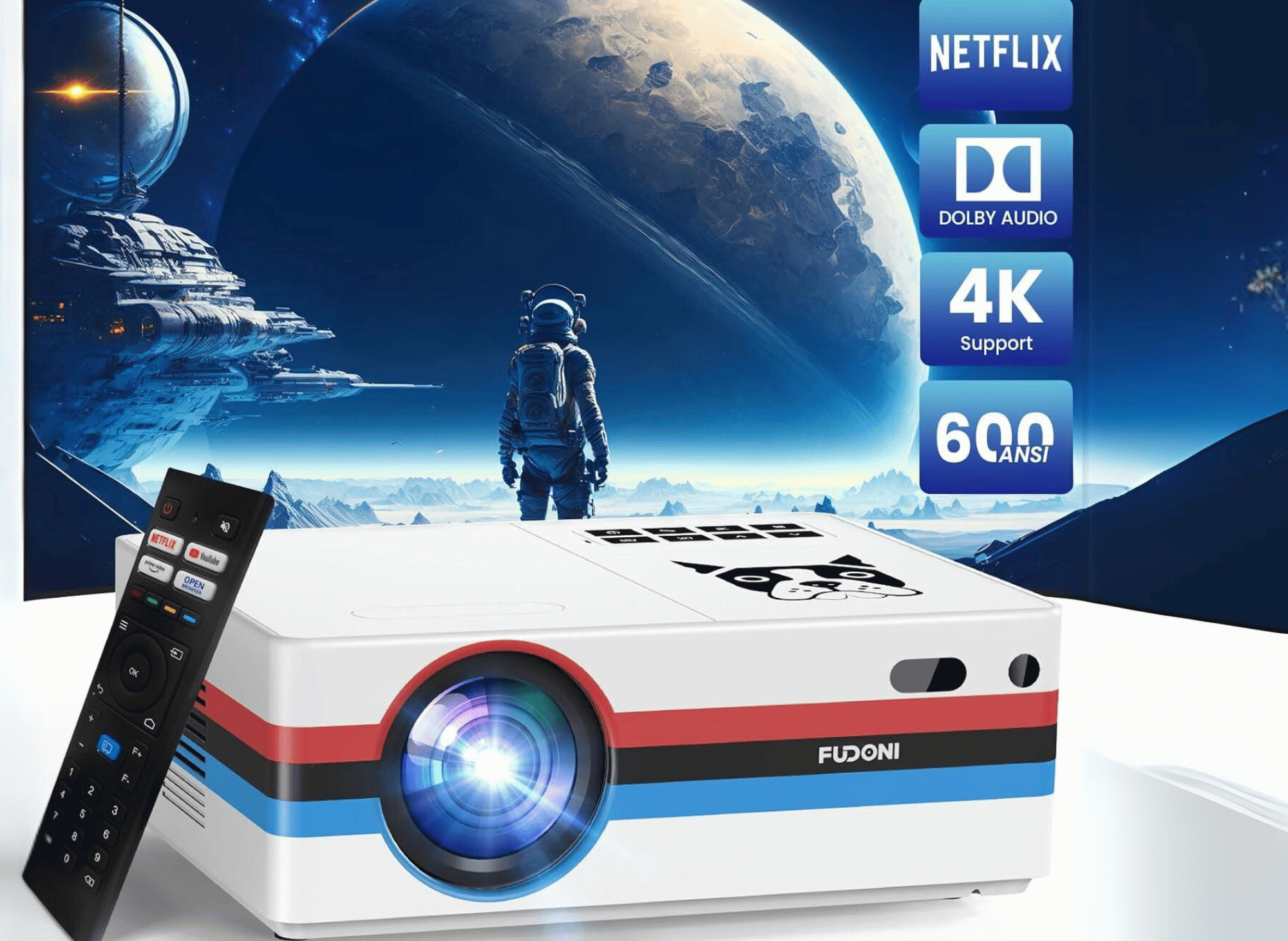 The FUDONI Projector with WiFi and Bluetooth is a cutting-edge entertainment device that offers an unparalleled viewing experience. As a budget projector, it provides excellent performance without compromising on quality. Utilizing advanced technology, this projector boasts a range of impressive features, such as built-in Netflix, YouTube, and Prime Video streaming capabilities, making it the perfect choice for education, home cinema, gaming, and business purposes.