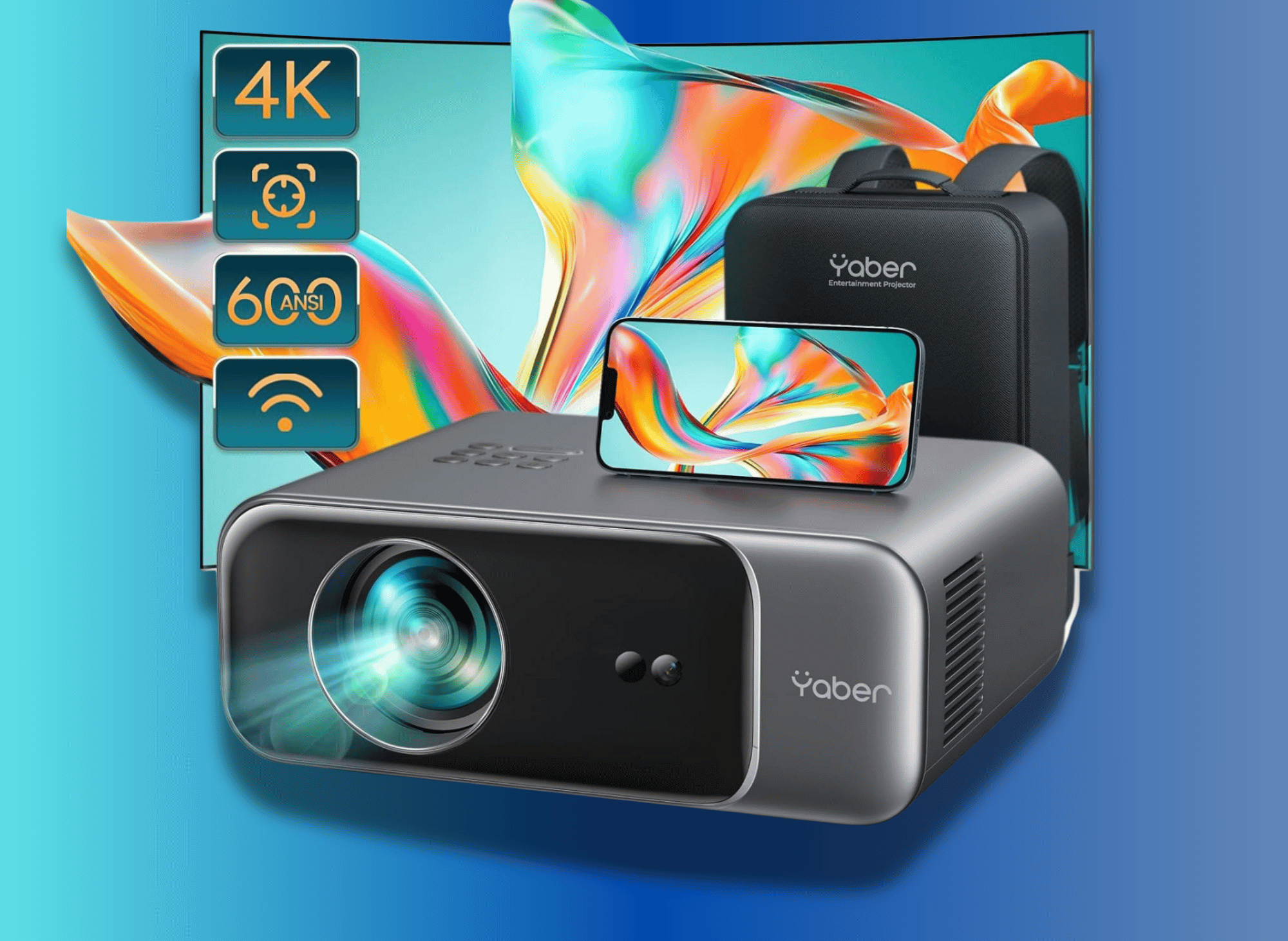 Yaber Projector with WiFi 6 and Bluetooth 5.2 - the ultimate home theater experience. Designed by the renowned brand YABER, this projector offers cutting-edge technology for seamless connectivity and unparalleled image quality.