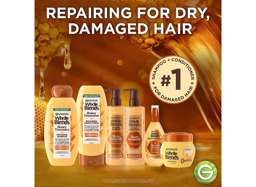 Garnier Whole Blends Honey Treasures Repairing System is expertly crafted with natural ingredients like honey, propolis, and royal jelly extracts to heal damaged hair. This shampoo honey treasures blend is paraben free for your peace of mind. The full range includes shampoo, conditioner, hair mask, and 10 in 1 leave-in treatment for maximum repair results.