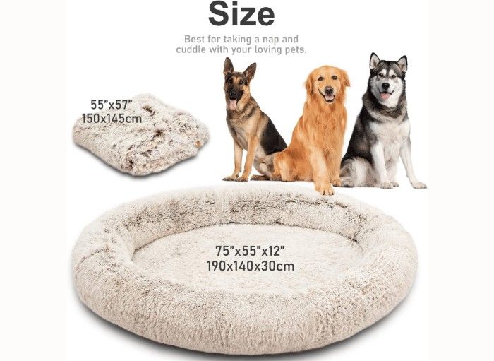 Welcome to the world of luxury bedding, where restful slumbers await you and your furry friends with this giant dog bed for humans. Measuring a whopping 72.8×43.3×11.8 inches, this plush haven features a luxuriously soft faux fur exterior, ensuring your deep sleep won't be interrupted by fur particles.