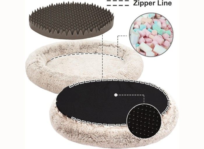 With its oversized surround and thick bolster, you'll feel the embrace-like sense of security reminiscent of being cradled in your mother's arms. Not only is it comfortable and cozy, but it also effectively relieves anxiety. Made with premium faux fur plush, this bed is soft, warm, breathable, and durable.