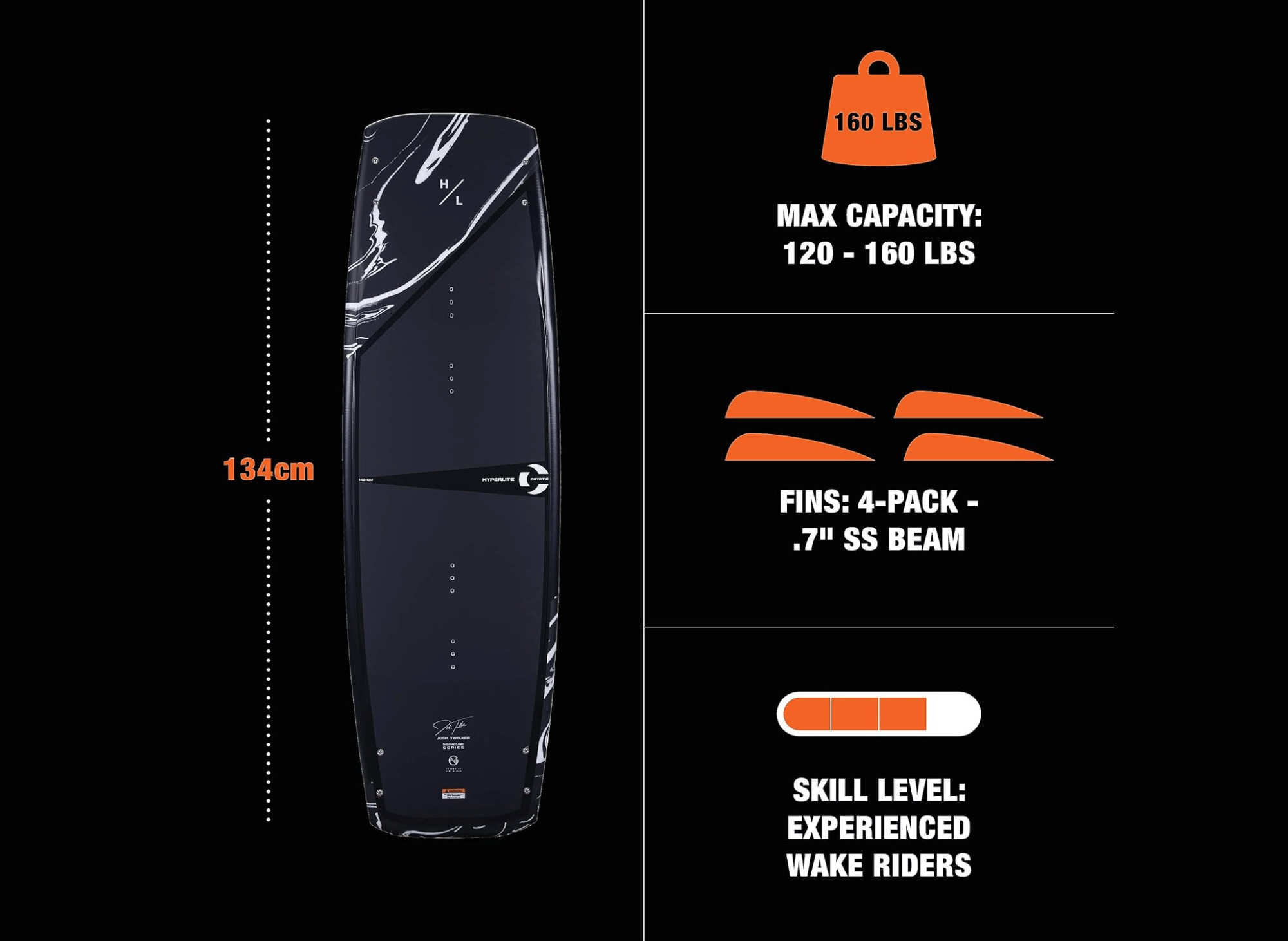 The Hyperlite wakeboard offers unmatched stability and control, giving riders confidence and pushing their skills to new limits and reach new heights in their performance. The high-quality construction materials ensure durability, making it a long-term investment for any rider.