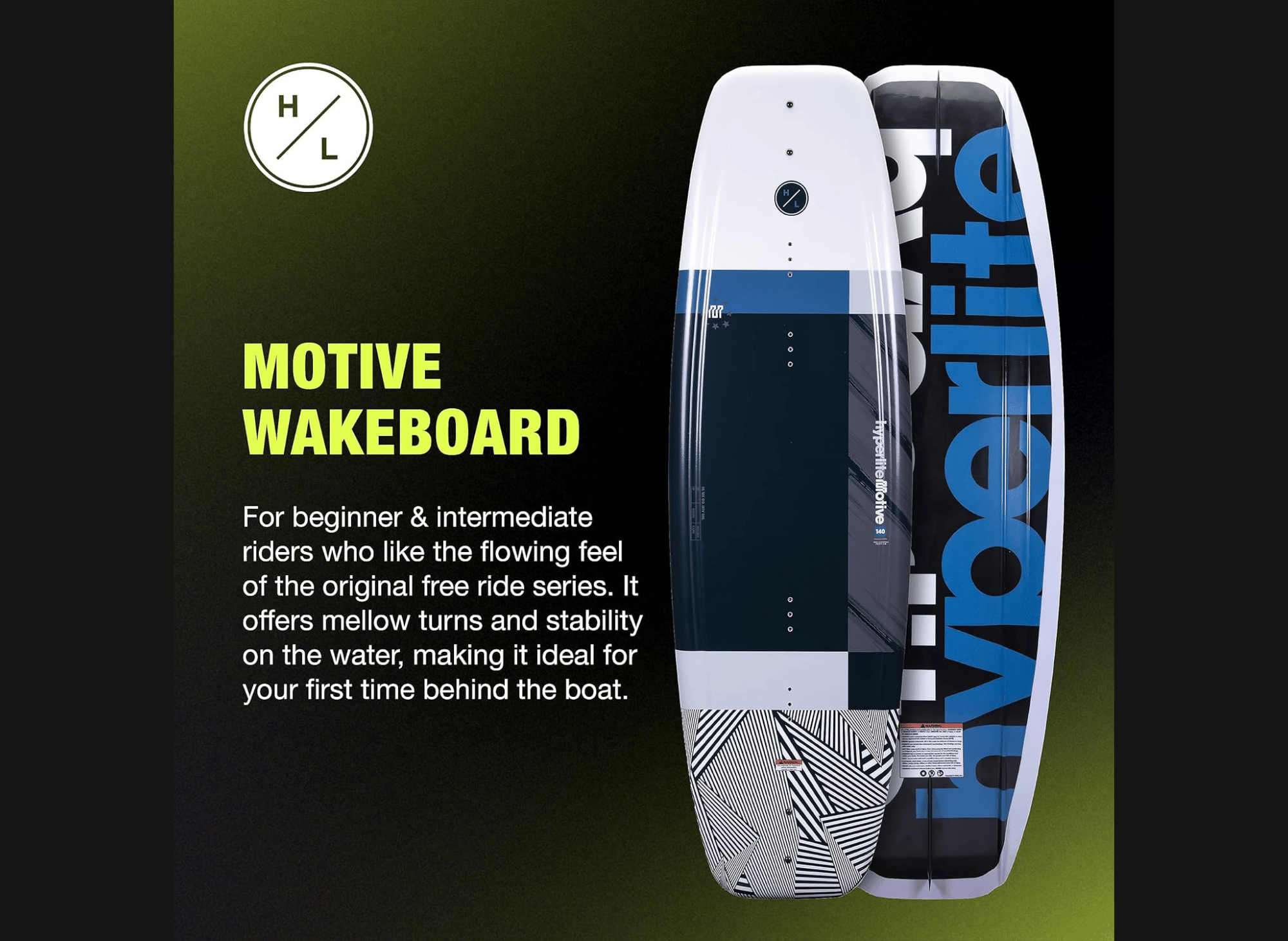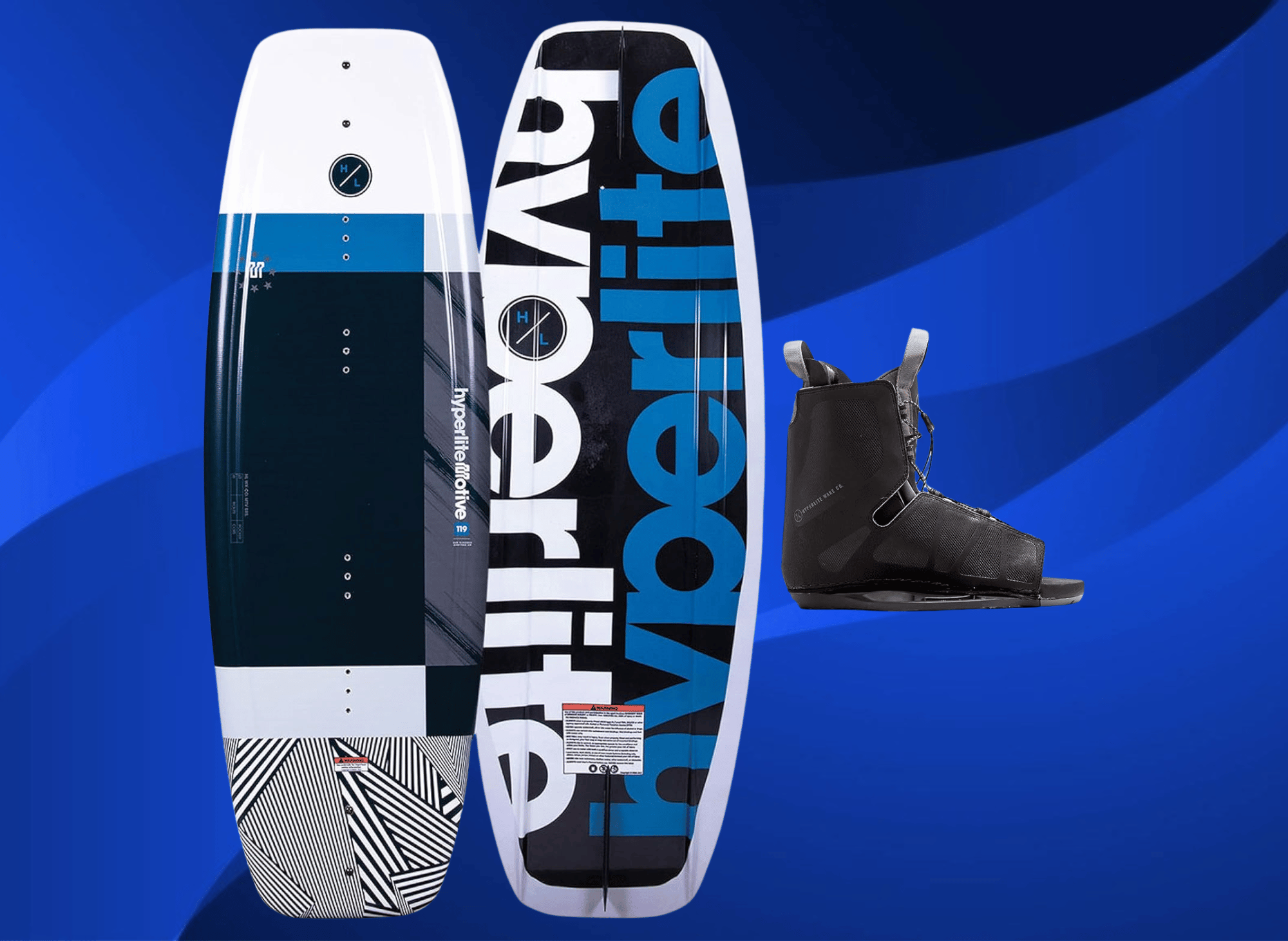 The Hyperlite Motive Wakeboard is the perfect choice for riders looking to break into the sport. This top-quality equipment, including the wakeboard and its bindings, is ideal for beginners.