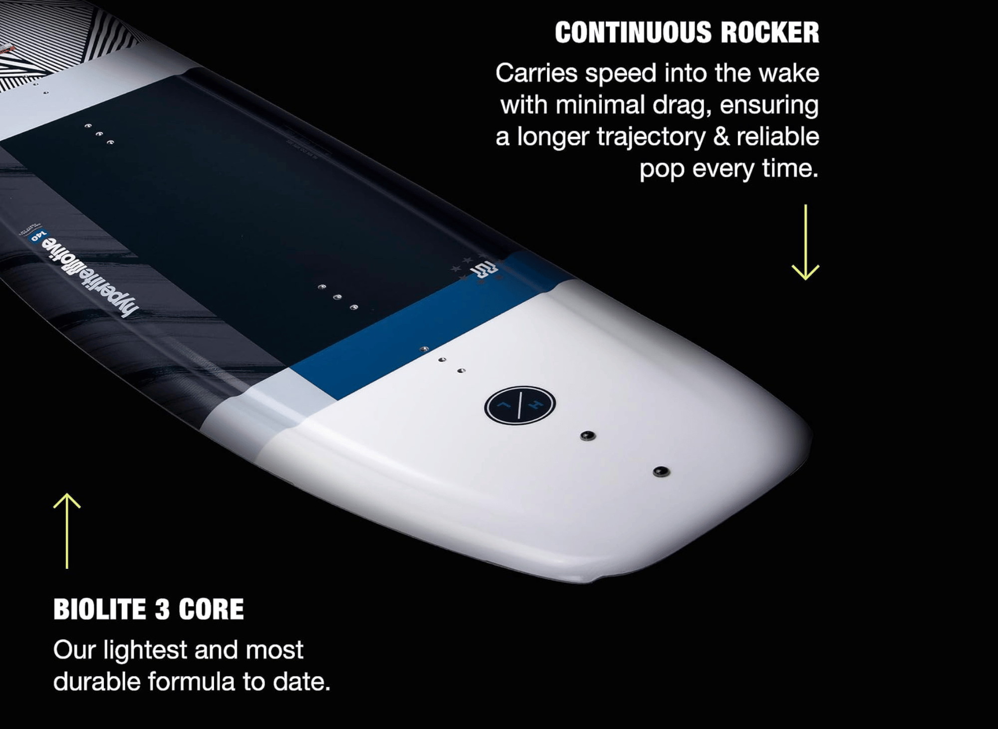 This wakeboard offers durability and responsiveness like no other is built with advanced construction techniques, including Hyperlite’s proprietary Biolite 3 Core encased in layered fiberglass.