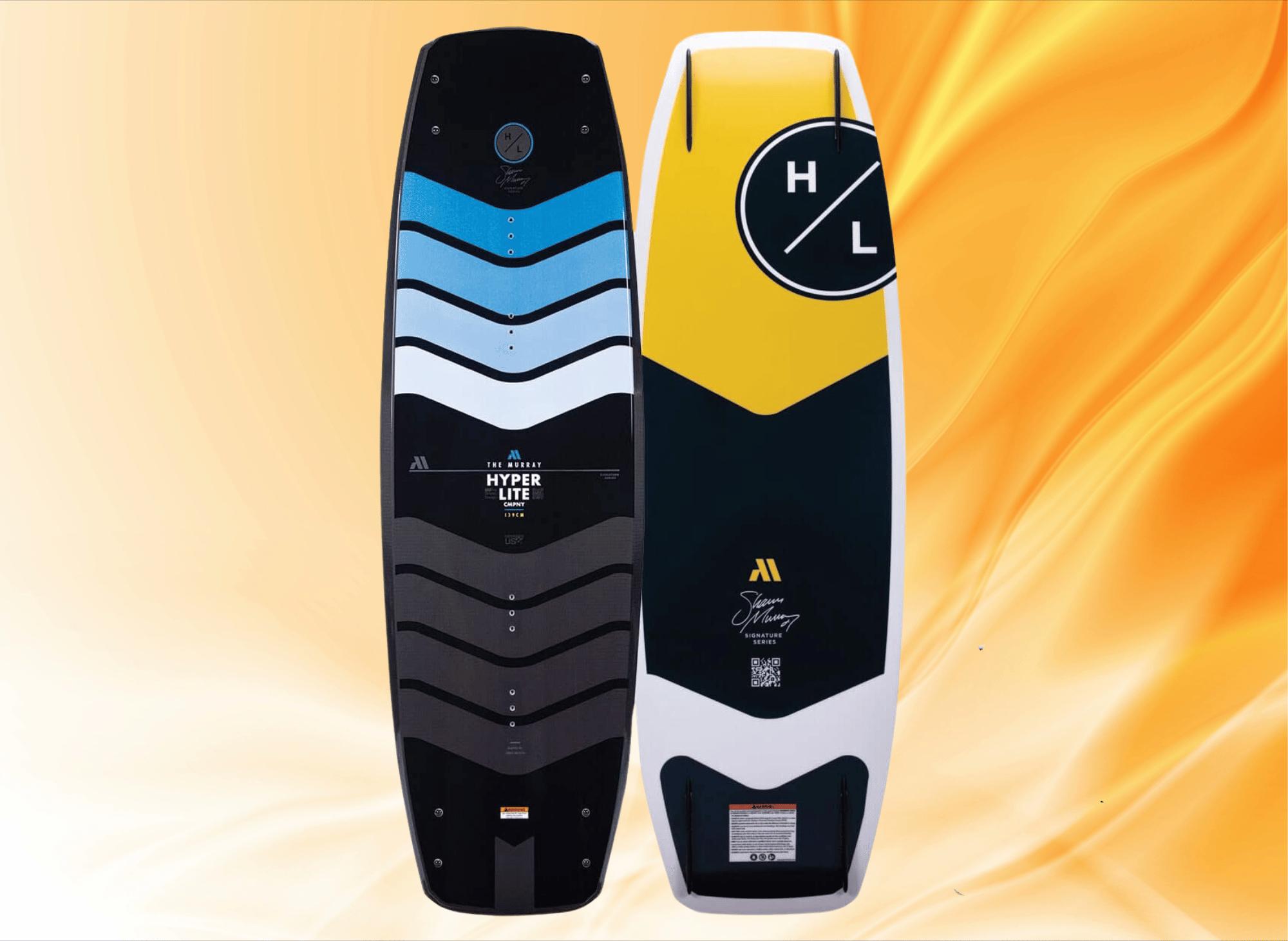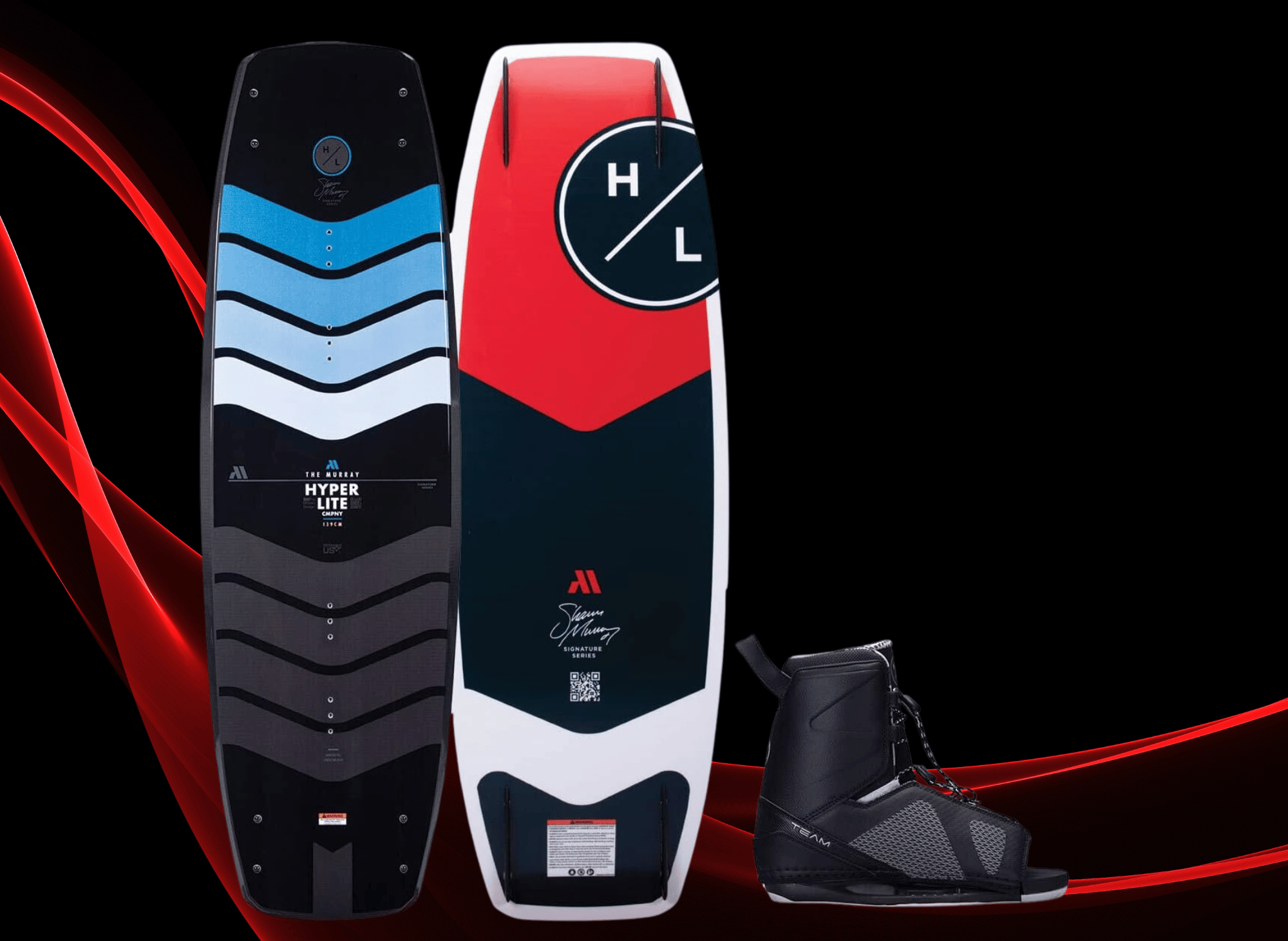 The Hyperlite Murray Wakeboard with Open-Toe Adjustable Team Bindings is a high-quality wakeboarding setup designed by legends Shaun Murray and Greg Nelson.