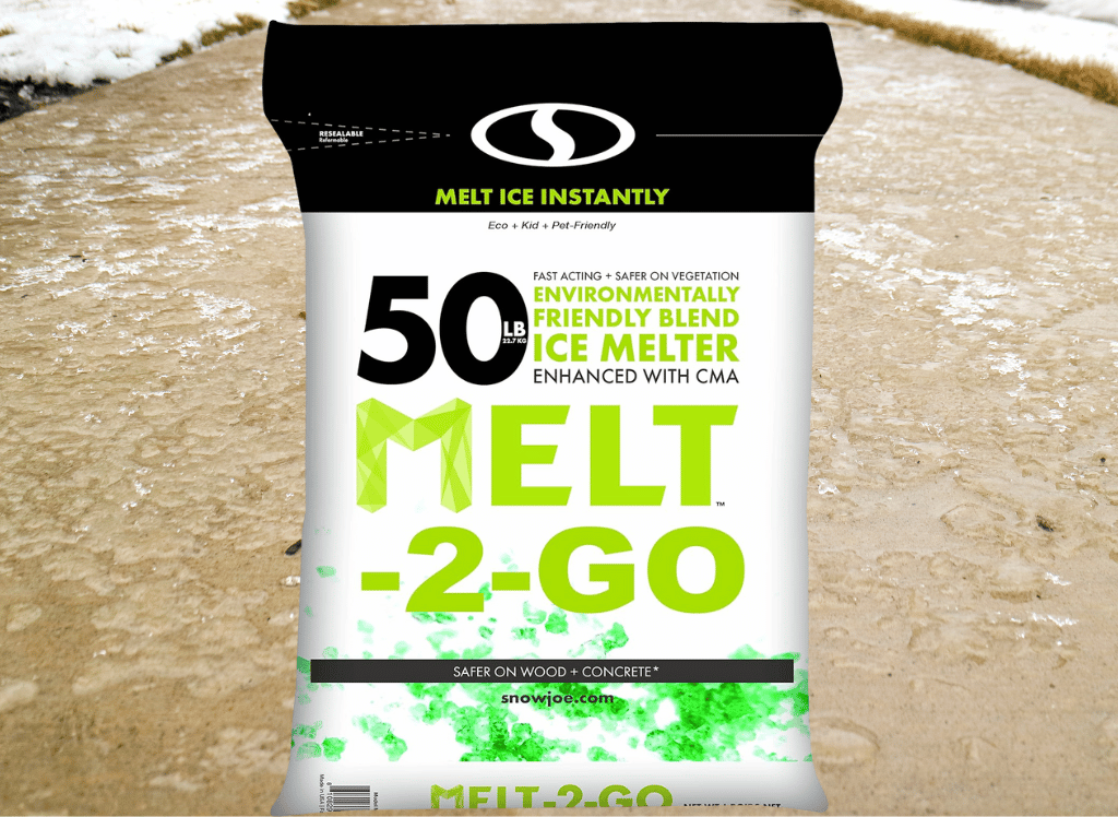 Snow Joe Melt-2-Go is great for ice and snow melt. With its unique anti-corrosion formula containing CMA (calcium magnesium acetate), it not only effectively melts ice and snow down to -10°, but also ensures the safety of vegetation, concrete, and metals with its corrosion-resistant properties.