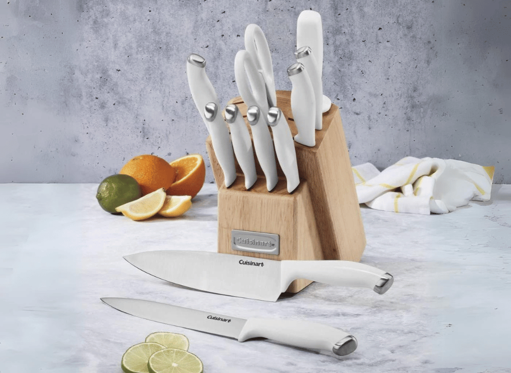 The Cuisinart Knife Set with Block is a must-have addition to any kitchen. This set boasts a sleek white color and is crafted by the reputable brand Cuisinart. Each blade is made of high-quality stainless steel, ensuring long-lasting sharpness and precision. The fine blade edge allows for effortless cutting through various ingredients.