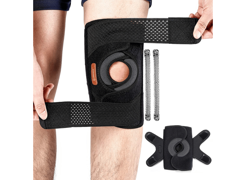 The IPOW Light and Breathable Knee Brace offer superior support and protection for your knee joint. It features an open patella design with thick EVA padding to protect the knee better, as well as two adjustable Velcro straps and a pressure belt with an upgraded anti-slip design that allows you to adjust it according to your shape.