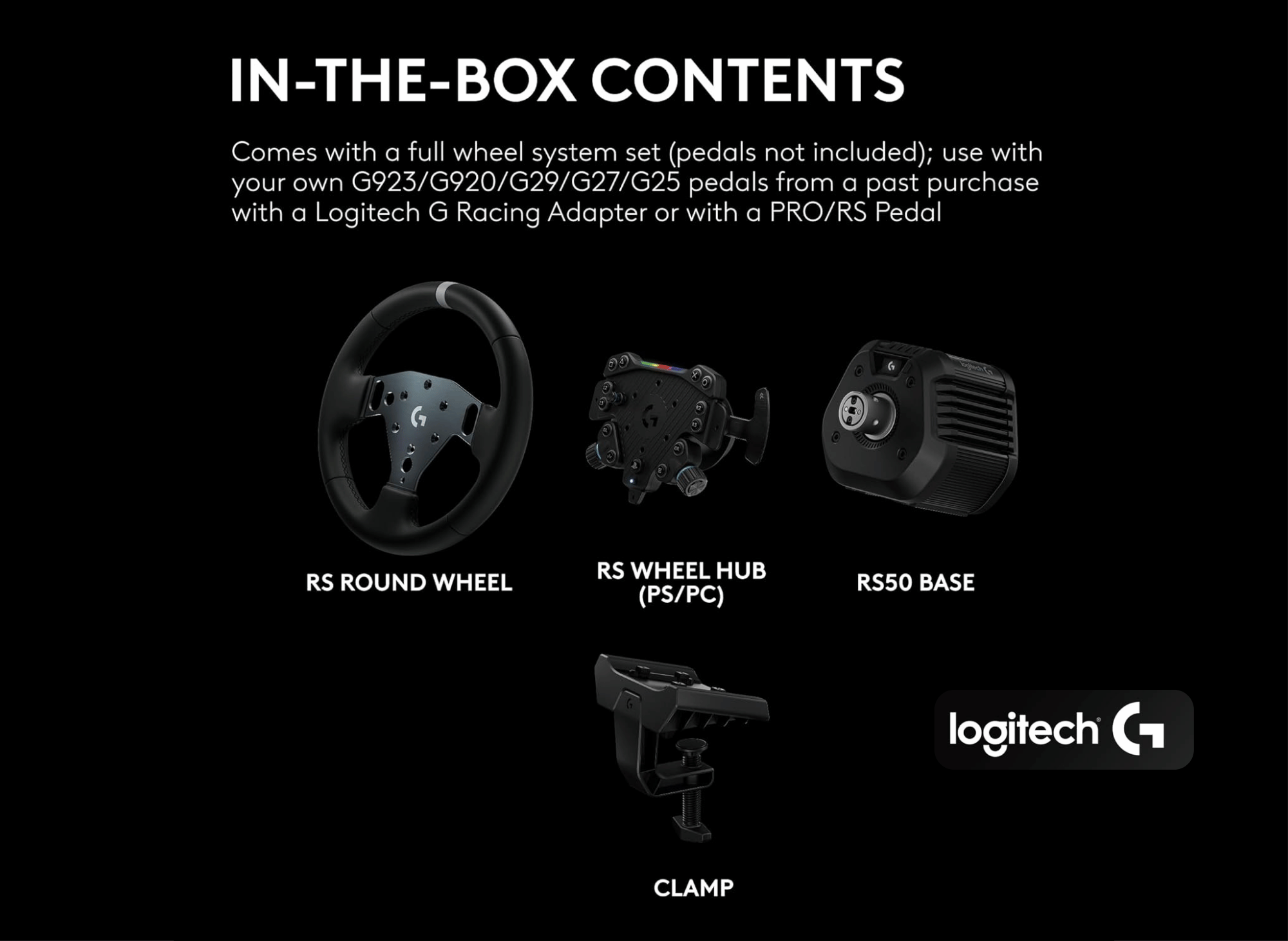 Build quality is a clear priority throughout the RS50 system. The sturdy construction ensures the wheel, hub, and pedals can withstand the rigors of intense sim racing sessions. The included table clamp offers a secure mounting solution for those racing at a desk, while the integrated quick-release mechanism makes it easy to swap between the RS Wheel Hub and other compatible wheels, such as the G Pro wheel, without missing a beat.