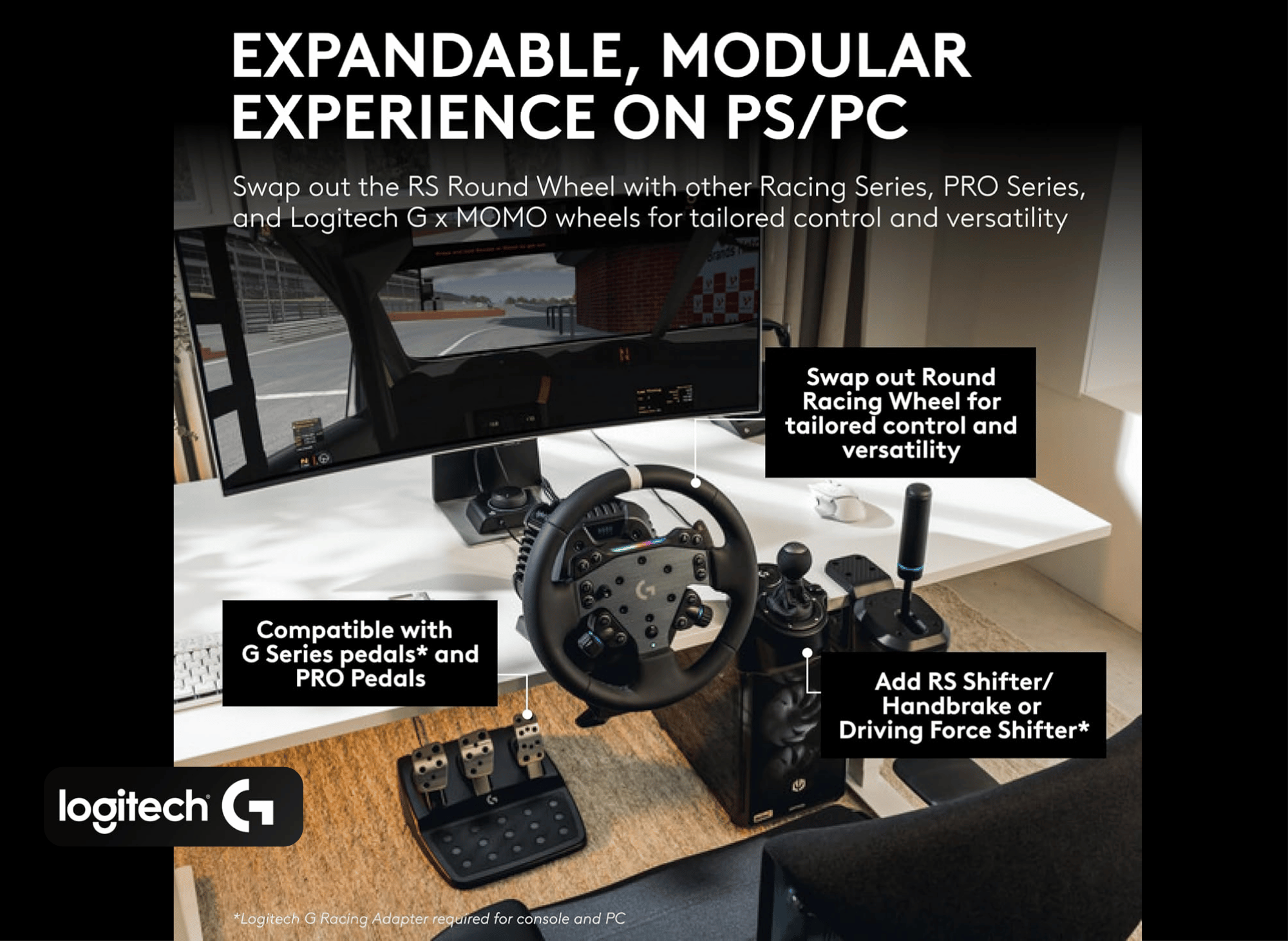 - PRO Series: If you decide later that you want a formula-style wheel for F1 racing, the hub accepts other Logitech rims.
