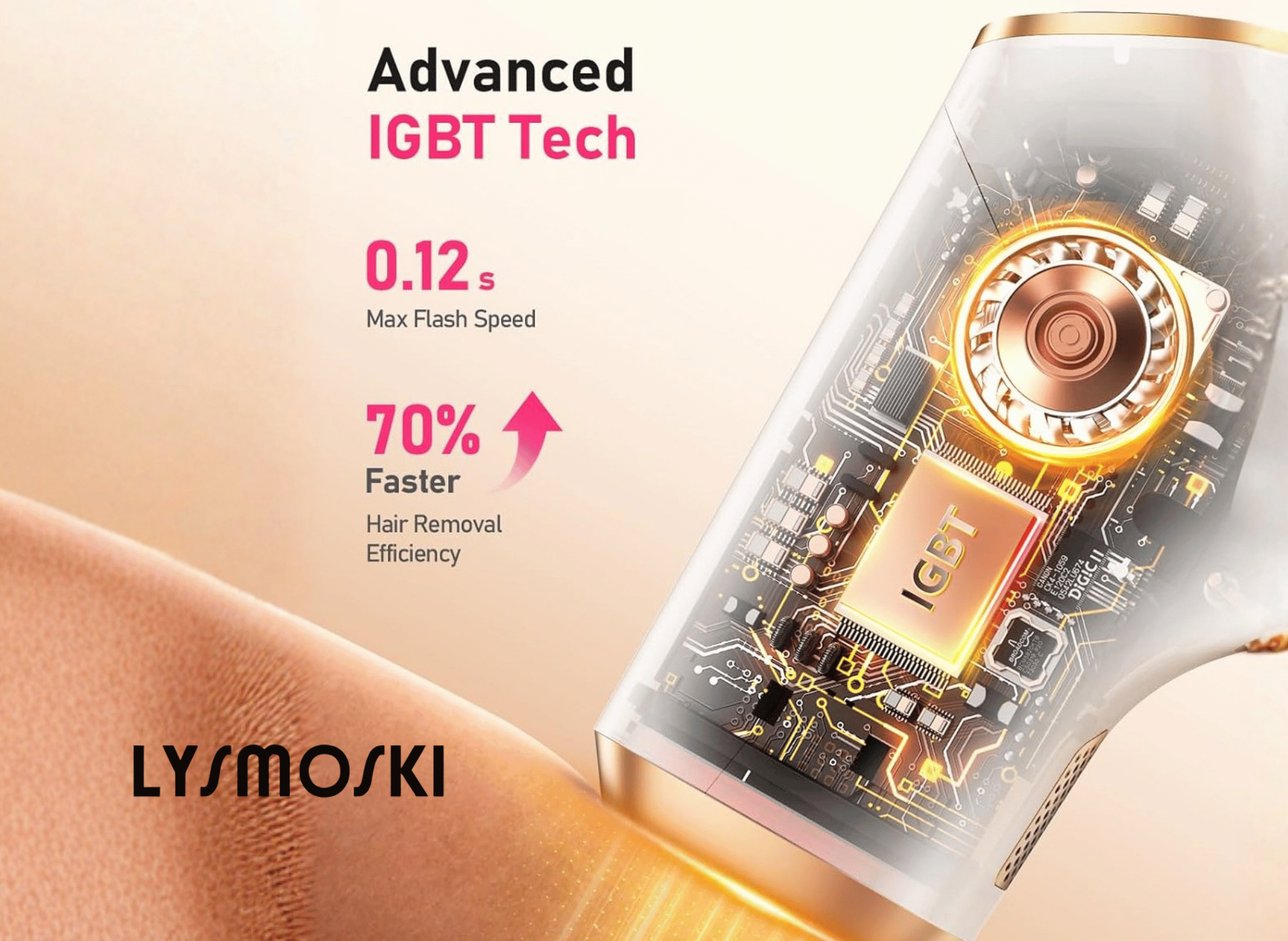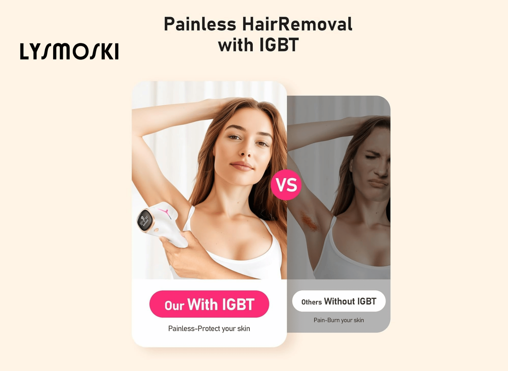 Pain is a significant deterrent for many people considering laser treatments. LYSMOSKI utilizes advanced double IGBT (Insulated Gate Bipolar Transistor) pulse technology. In simple terms, instead of hitting the skin with one harsh spike of heat, it delivers consecutive, gentle pulses. This dramatically reduces the "snap" sensation often associated with IPL, making the experience nearly painless.