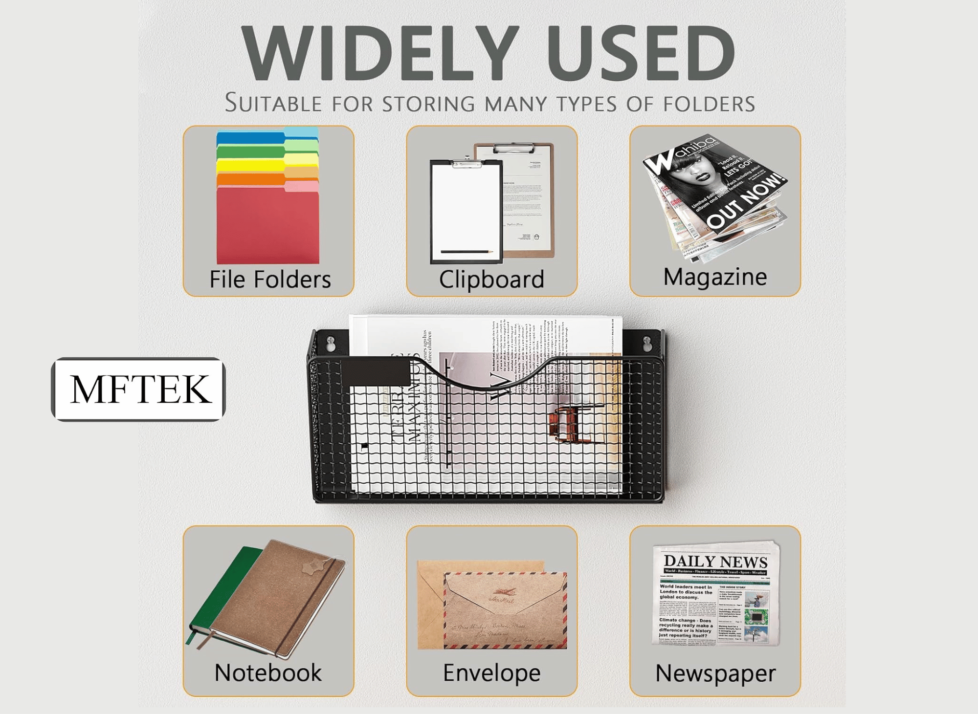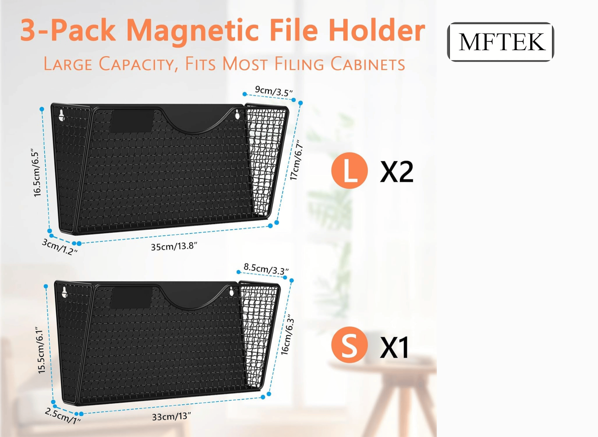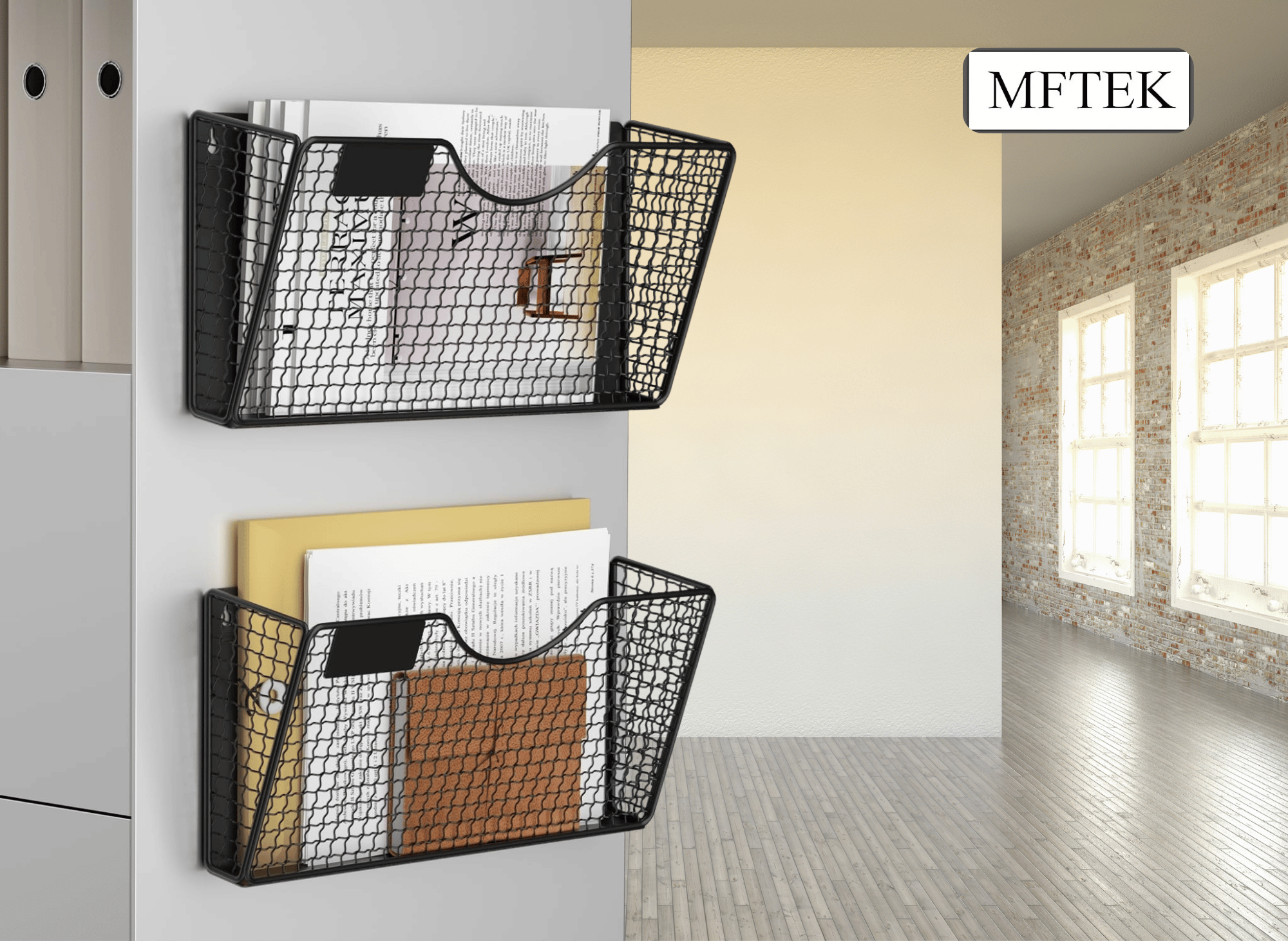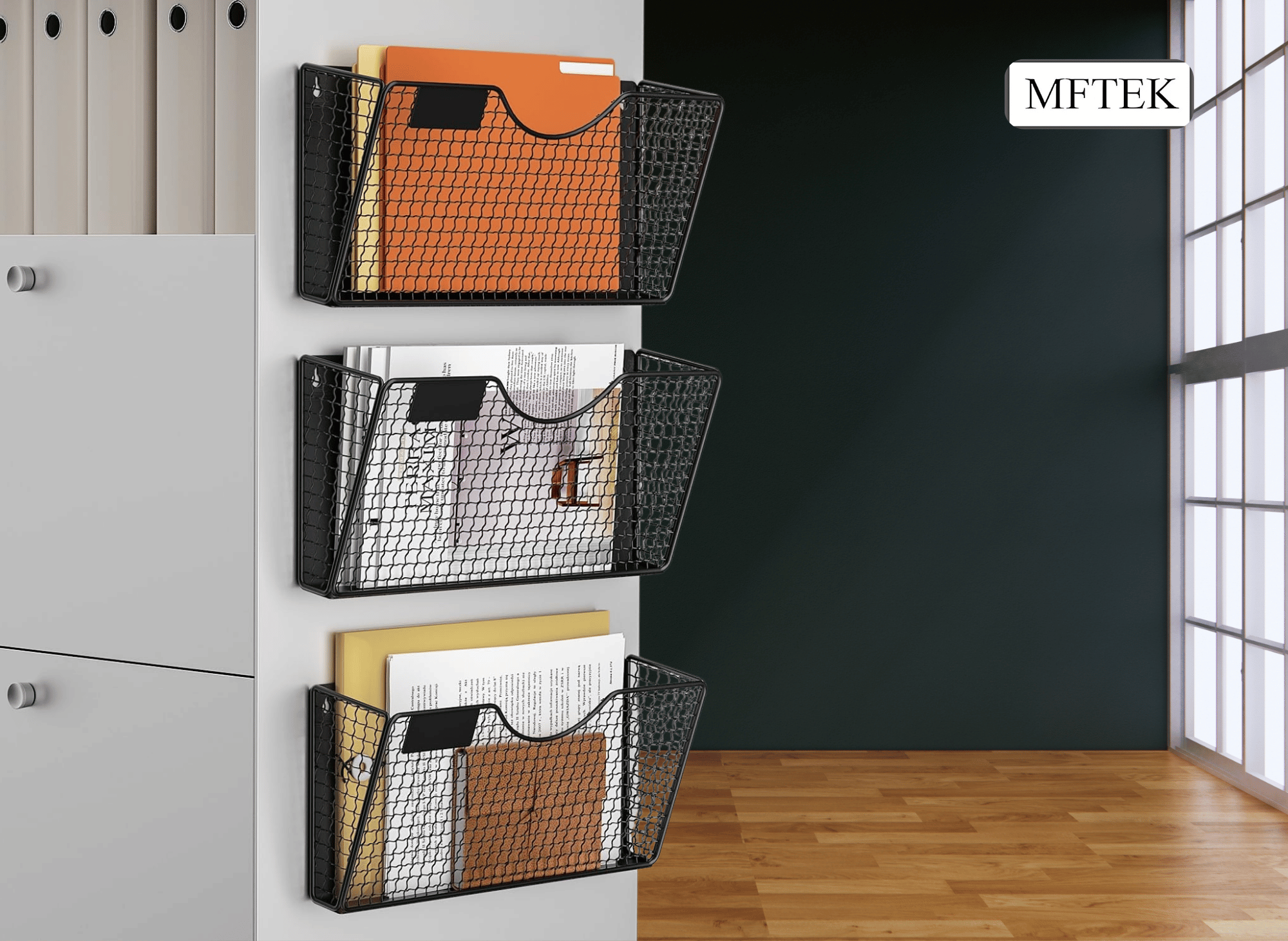 The MFTEK magnetic file holder features durable metal wire mesh construction with a black powder-coated finish. This combination provides excellent longevity while maintaining a professional appearance that complements any office décor. The powder coating also offers oxidation resistance and rust prevention, ensuring the organizer retains its appearance over time.