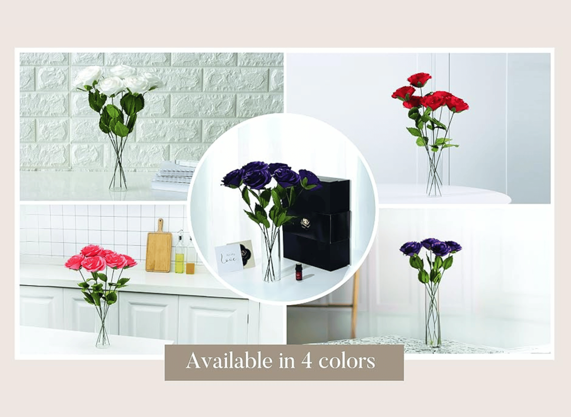 Elevate your gifting game with the Michael Grace Gifts Paper Flower Bouquet, a timeless and elegant gesture that speaks volumes. This luxurious set includes a bouquet of six handcrafted purple paper roses, a sleek glass vase for display, a bottle of pure rose essential oil, and a heartfelt greeting card—all thoughtfully packaged in a premium gift box. Designed to bloom forever, these meticulously crafted paper flowers bring charm and sophistication to any space without the worry of wilting.