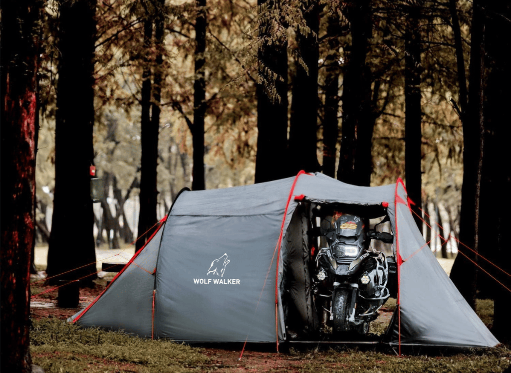 With its convenient access and great features, the Wolf Walker 3-person tent with a bike port is the perfect choice for adventure motorcycle campers.