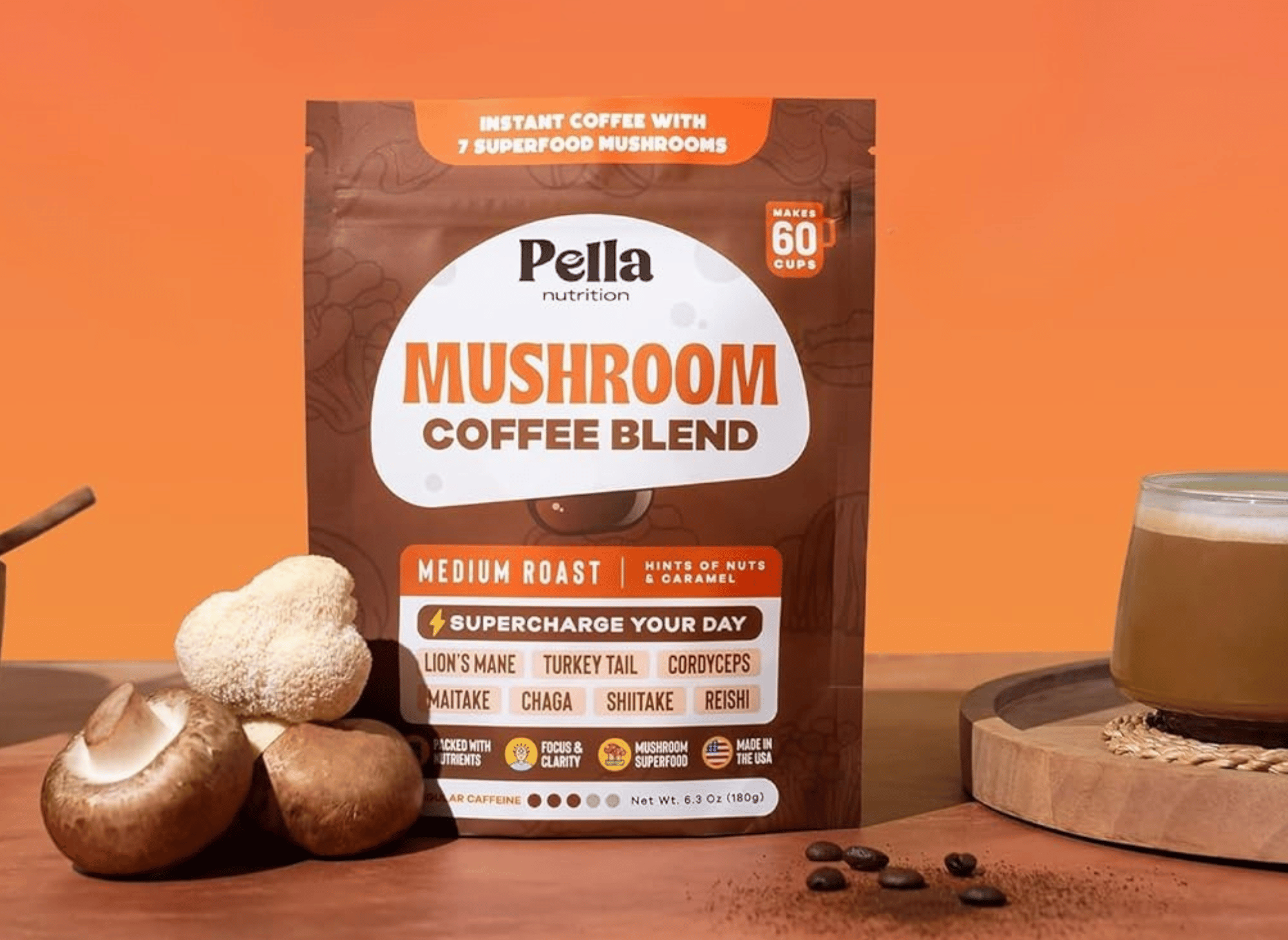 Pella Nutrition packs all seven of the functional mushrooms covered above into a single blend: lion's mane, reishi, chaga, cordyceps, shiitake, maitake, and turkey tail. Each serving delivers 1,500mg of their proprietary mushroom blend alongside organic arabica coffee sourced from Brazilian farms.