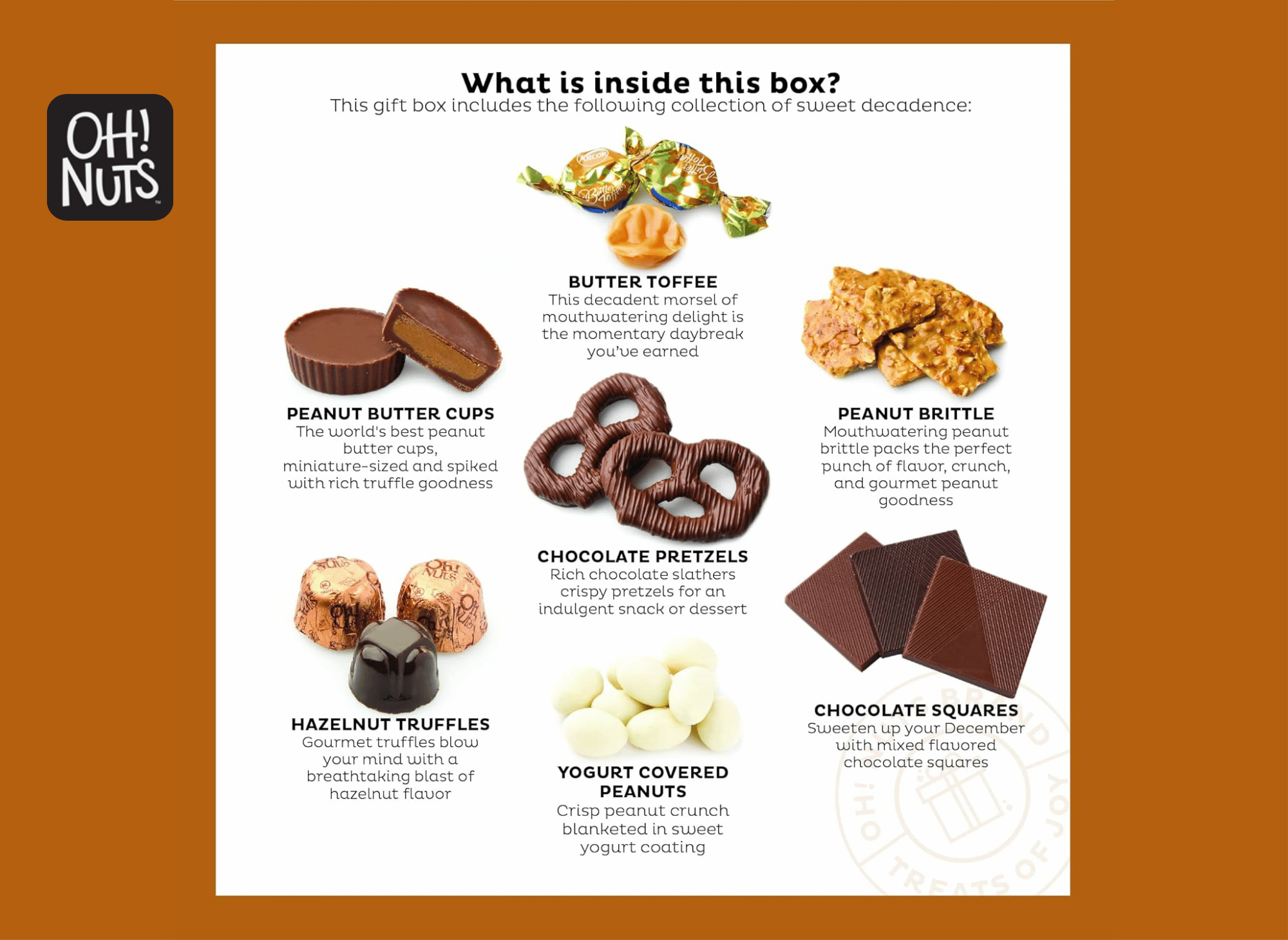 #ChocolateLovers #GiftBasketGoals #OhNuts #SweetTreats #ChocolateAddict #GiftGiving #ChocoDelight #SnackTime #LuxuryGifts #SweetSurprise