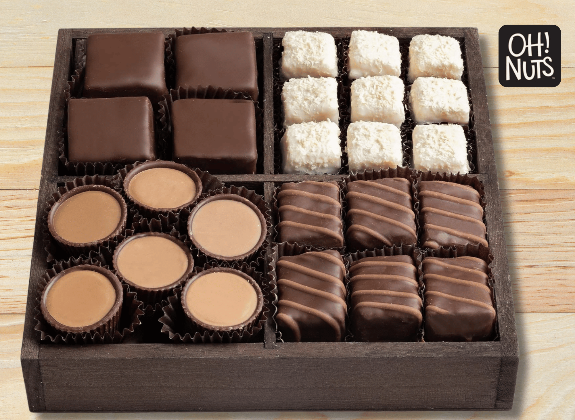 Oh! Nuts Gourmet Chocolate Gift Box - Assorted Treats in Elegant Wooden Tray
