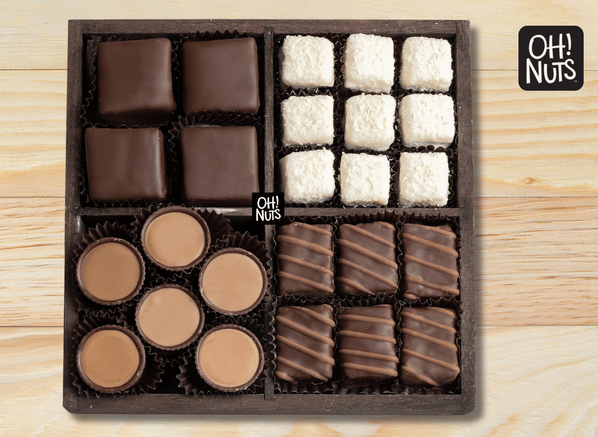 Oh! Nuts Gourmet Chocolate Gift Box - Assorted Treats in Elegant Wooden Tray