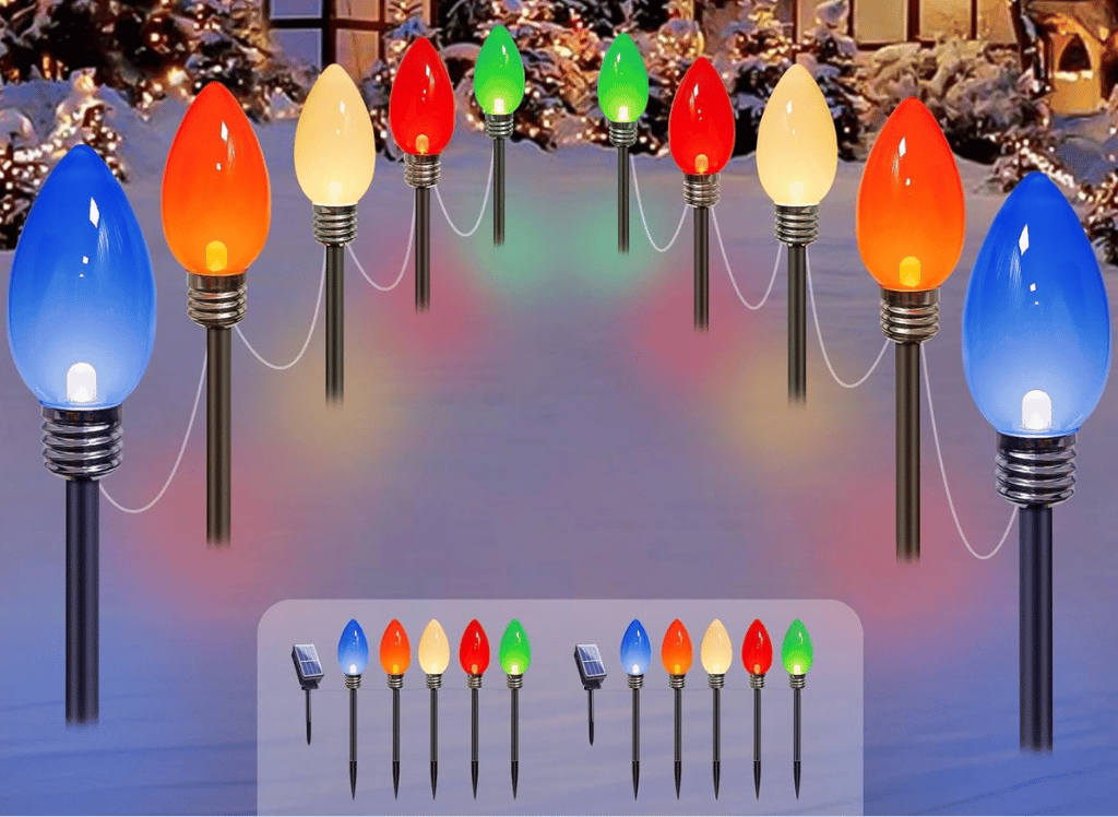 BHCLIGHT 2PK 10pcs Solar C9 Christmas Lights - Jumbo Multicolored Bulb with Stakes