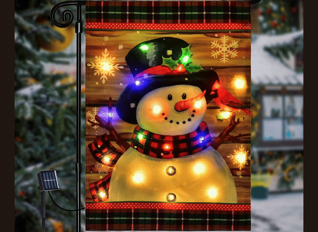 - Festive Appeal: The Winter Snowman Garden Flag with Solar Lights adds a whimsical touch to your holiday decor, enhancing the festive ambiance of your home.