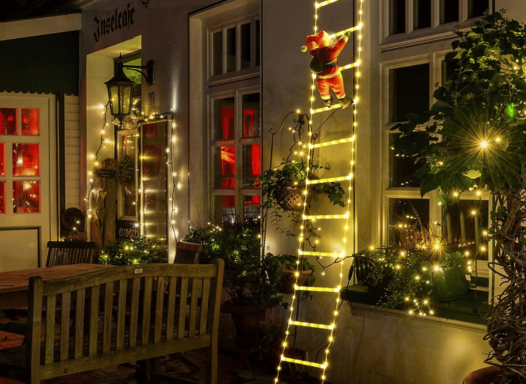 Toodour is the perfect addition to your holiday decor. This unique Christmas light set features a 9.84ft rope ladder and a detachable Santa, creating a festive and eye-catching display for your home, garden, yard, window, porch, or even Christmas tree.